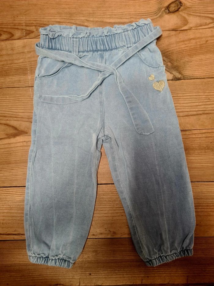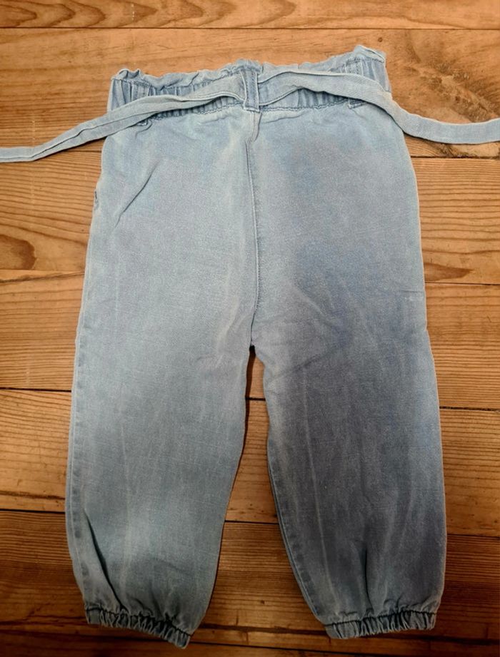 Jean paperbag pour bebe fille en denim bleu clair de la marque orchestra. Taille 18 mois soit 81 cm. En bon état.