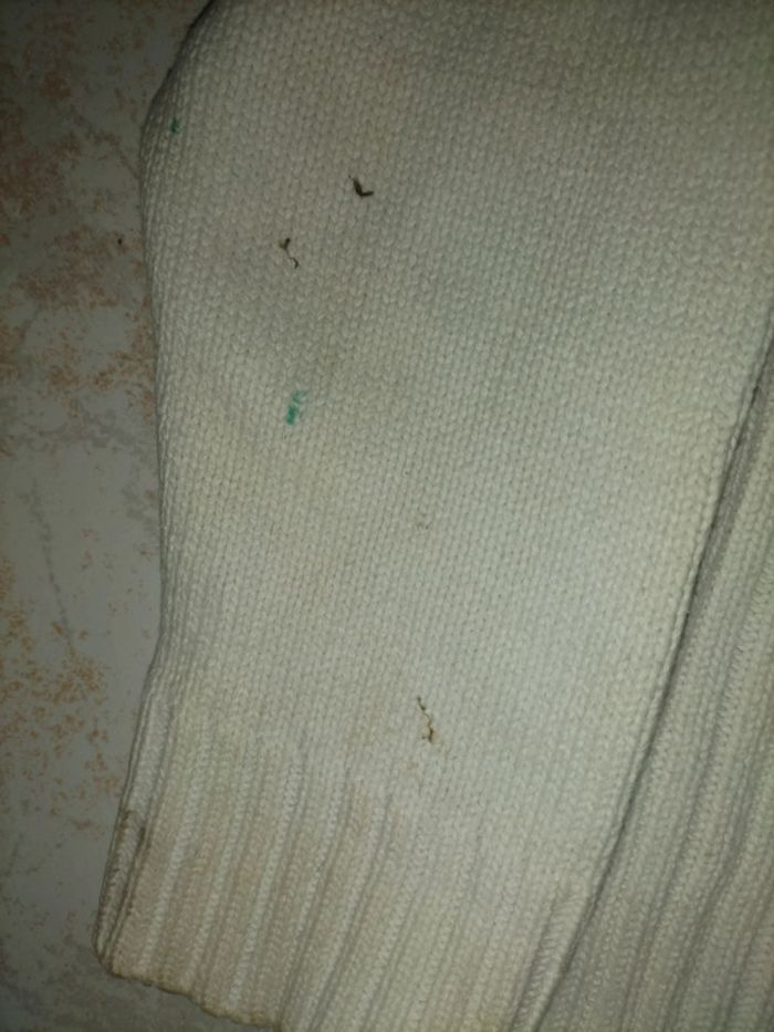 Tâches sur une des manches et agrandies en bas