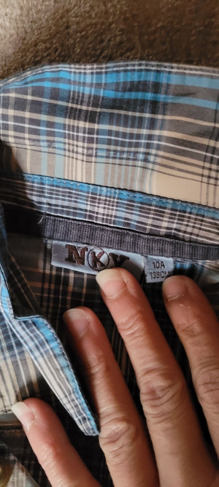 Chemise manches longues Bleu blanc beige NKY 10 ans Portée une fois