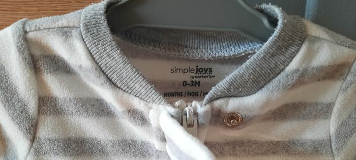 Bien chaud et tout doux. Fermeture éclair bidirectionnelle, la fermeture éclair à double sens permet de garder bébé au chaud pendant le changement de couche. Languette de sécurité pour protéger les petits mentons. 100% polyester, molleton, polaire Taille de 0 à 3 mois, 4-5.7 kg