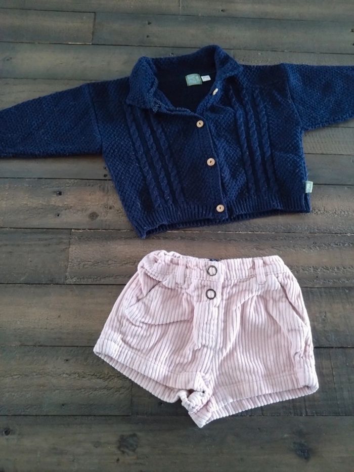 Un short en velours côtelé très bon état Kiabi Gilet hiver très bon état Marine tape a l'œil