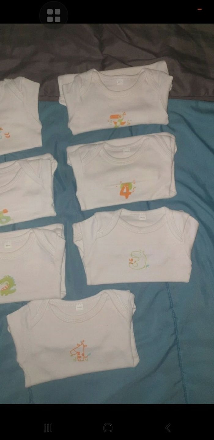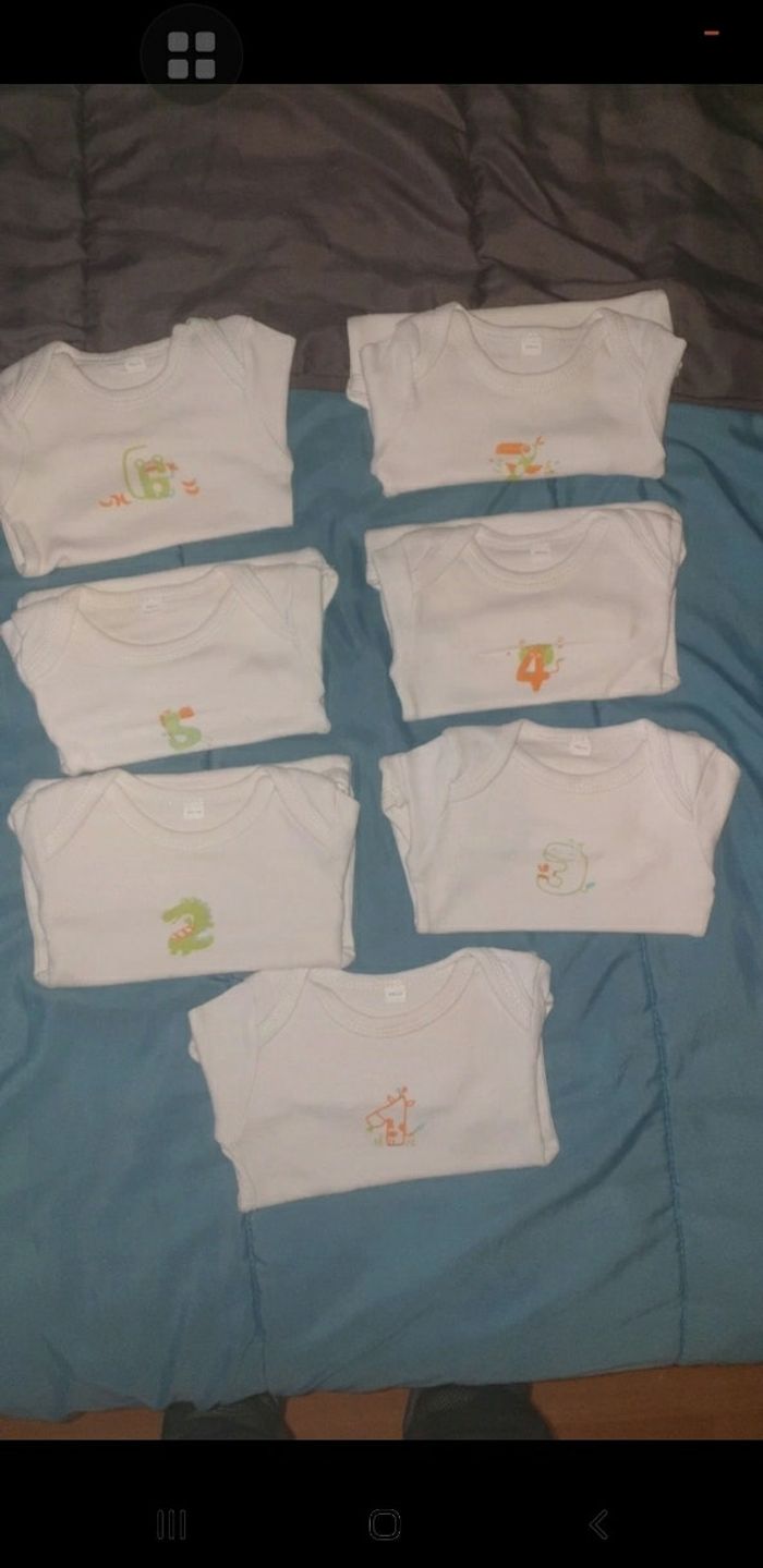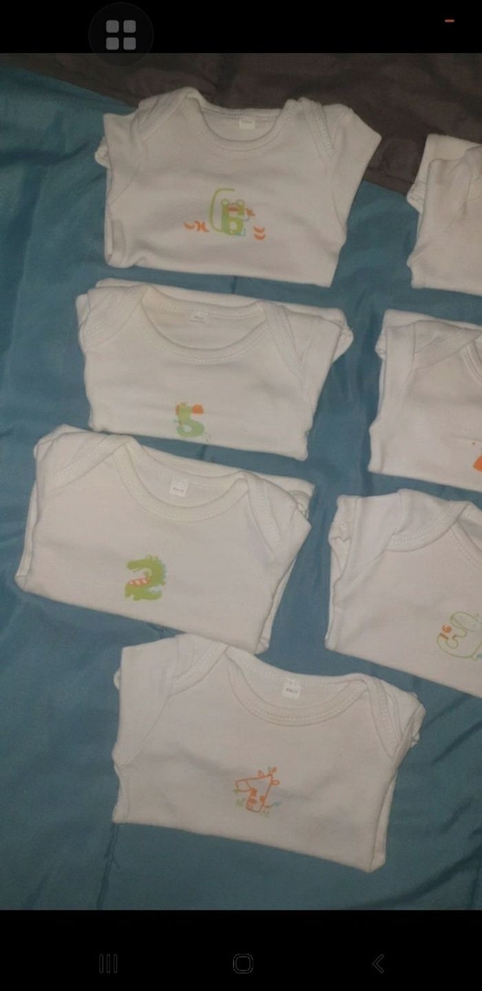 Bodies blanc 6mois 1euro pièce ou 5euro les 7 boodies me dire en priver si vous voulez un seule bodies.