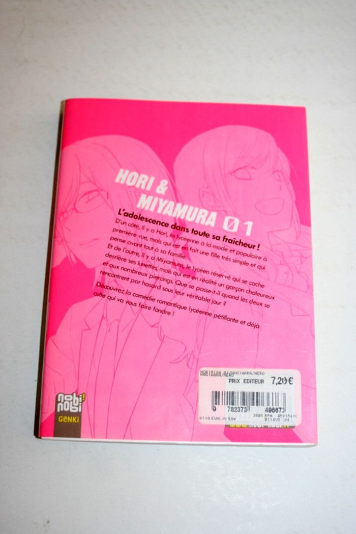 Horimiya Tome 1, 178 pages, 210g L'adolescence dans toute sa fraîcheur! D'un côté, il y a Hori, la lycéenne à la mode et populaire à première vue, mais qui est en fait une fille très simple et qui pense avant tout à sa famille.Et de l'autre, il y a Miyamura, le lycéen réservé qui se cache derrière ses lunettes, mais qui est en réalité un garçon chaleureux et aux nombreux piercings. Que se passe-t-il quand les deux se rencontrent par hasard sous leur véritable jour ?Découvrez la comédie romantique lycéenne pétillante et déjà culte qui va vous faire fondre !