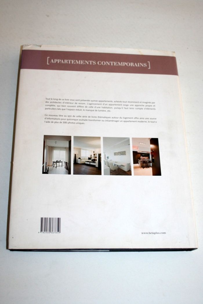Livre Appartements Contemporains de Jo Pauwels, surcouverture un peu abimée + reste d'étiquette sur l'avant, 200 pages, valeur d'achat 60e, 1,6kg Tout le long de ce livre vous sont présentés quinze appartements, achevés tout récemment et imaginés par des architectes d'intérieur de renom. L'agencement d'un appartement exige une approche propre et complète, qui bien souvent diffère de celle d'une habitation, puisqu'il faut tenir compte d'éléments particuliers tels que l'espace réduit, le manque de lumière, etc. Ce nouveau titre au sein de cette série de livres thématiques autour du logement offre ainsi une source d'informations pour quiconque souhaite transformer ou (ré)aménager un appartement moderne, le tout à l'aide de plus de 300 photos uniques.