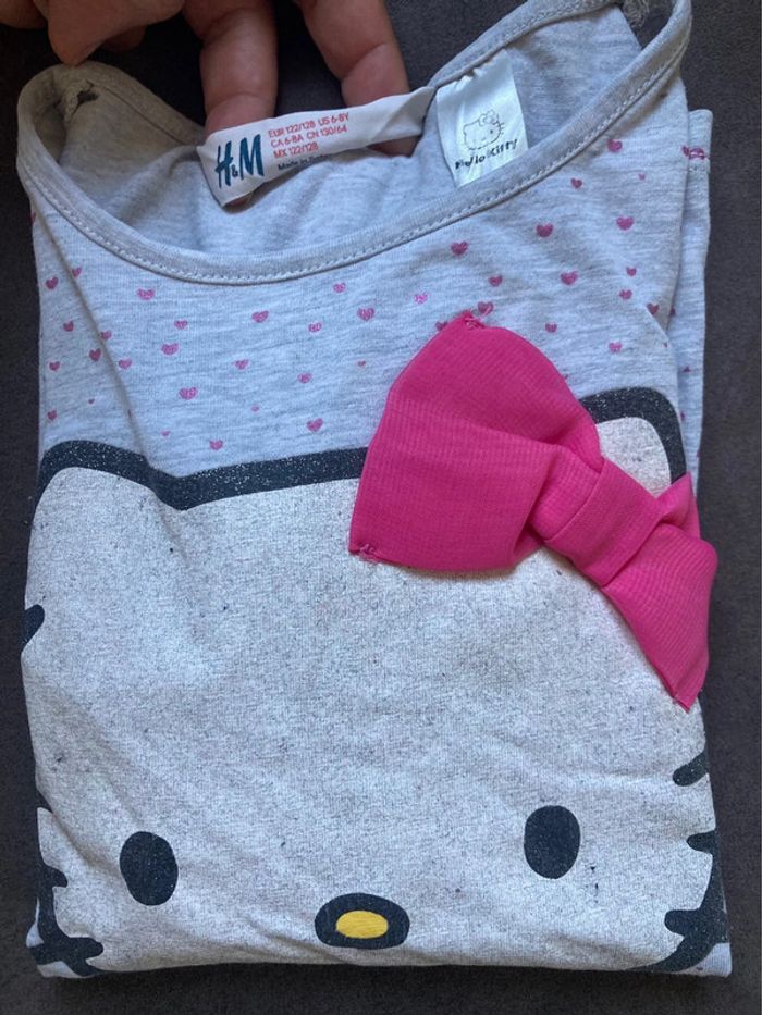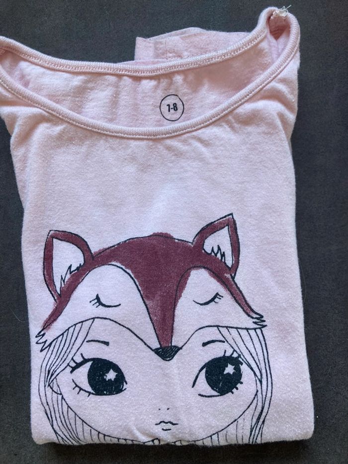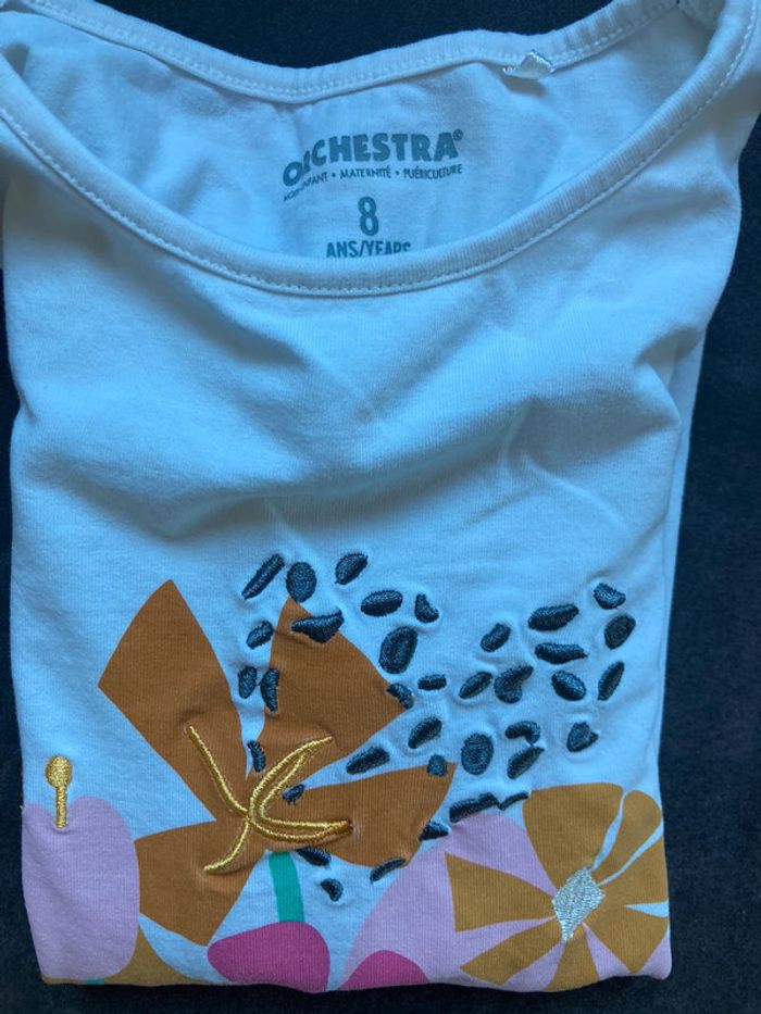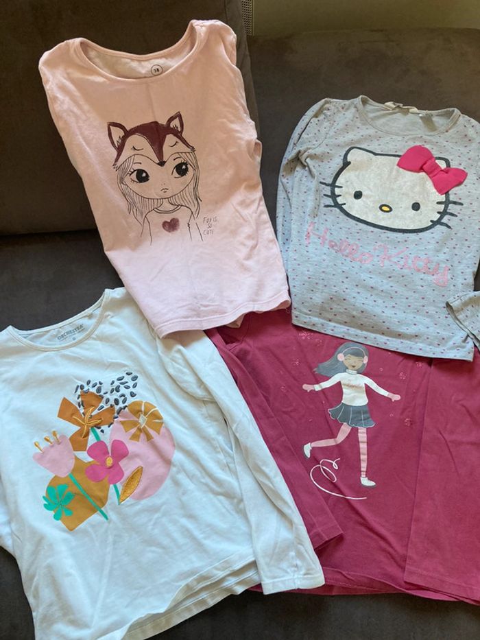Très bon état Foyer non-fumeur 4 T-shirt : –le blanc à fleurs, de la marque orchestra –le rose pale, renard, sans marque –le rose foncé fillette, marque in extenso – le gris Hello Kitty, marque H&M N’hésitez pas à consulter mes autres articles de même taille : #jo69_lyon_8