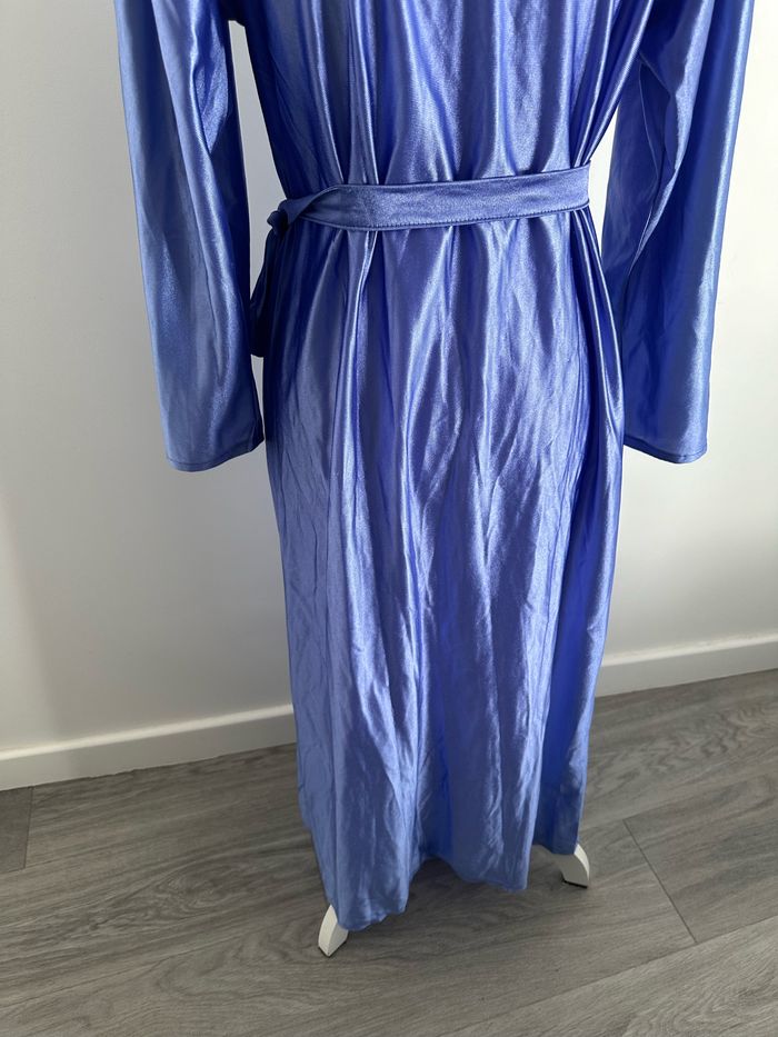 Peignoir kimono long satiné bleue lila Nouvelles Galeries Vintage T42 XL - photo numéro 4
