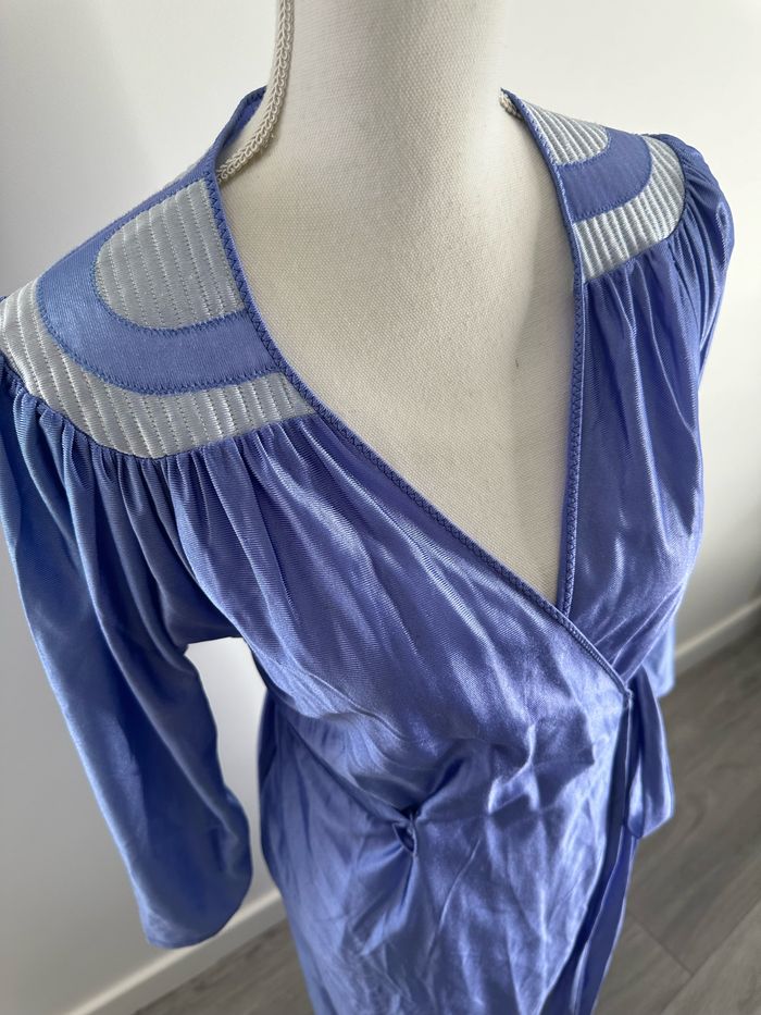 Peignoir kimono long satiné bleue lila Nouvelles Galeries Vintage T42 XL - photo numéro 2
