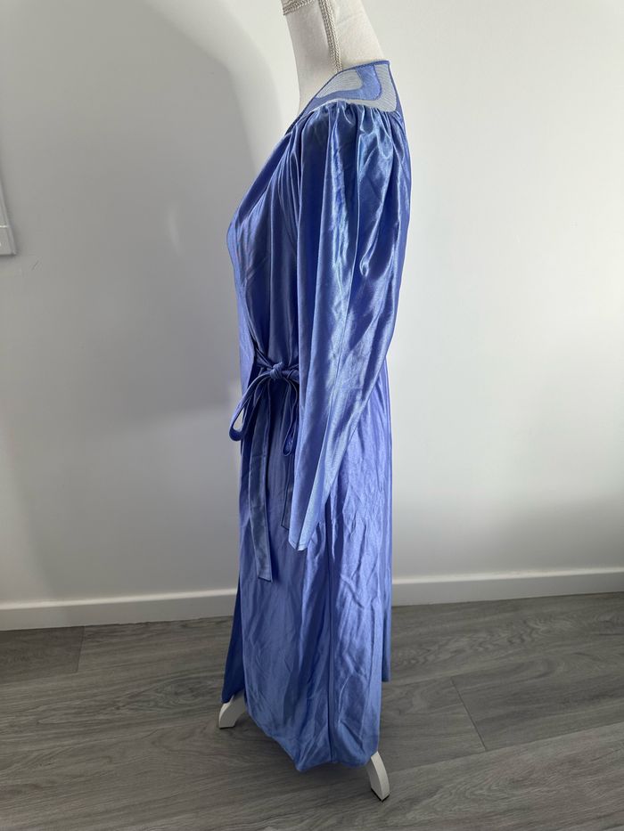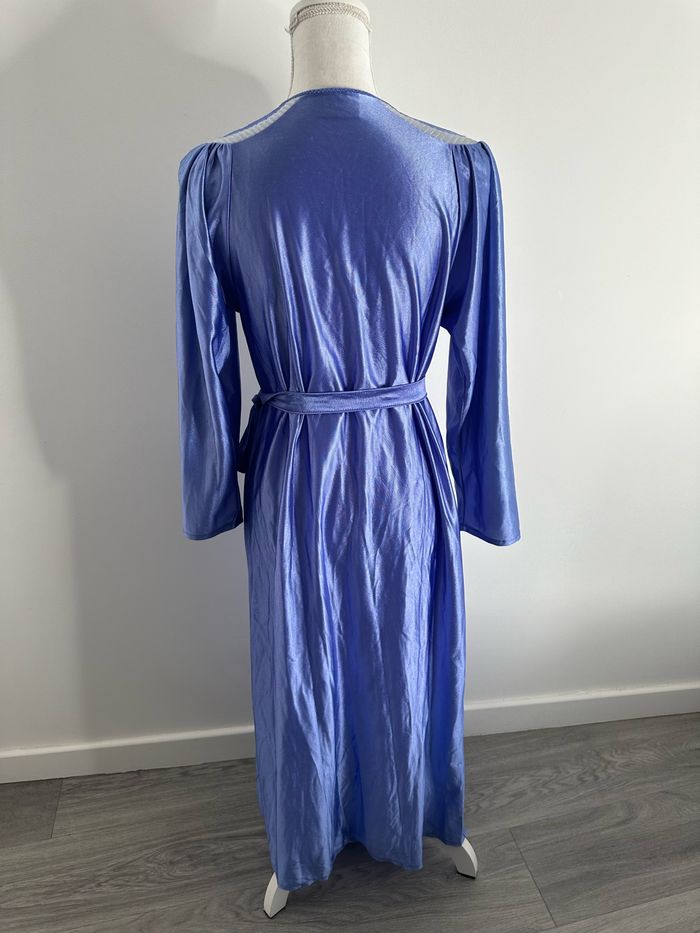Peignoir kimono long satiné bleue lila Nouvelles Galeries Vintage T42 XL - photo numéro 9