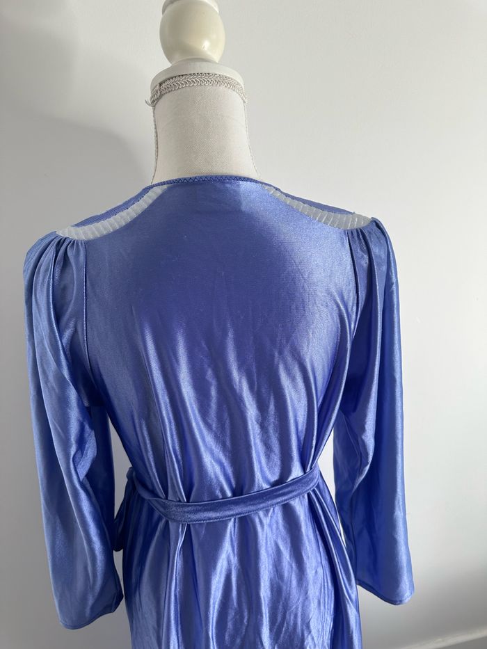 Peignoir kimono long satiné bleue lila Nouvelles Galeries Vintage T42 XL - photo numéro 7