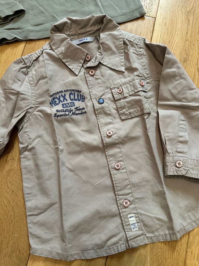 Chemise Mexx 18/24 et tee shirt manches longues Benetton Coloris kaki Très bon état
