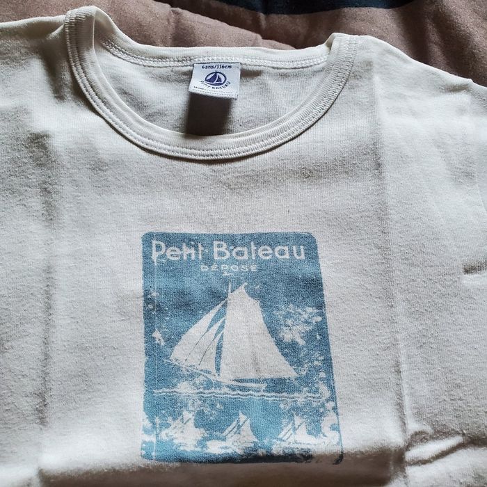 maillot de corps petit bateau 6ans blanc 1 tâche sinon bon état (1e)