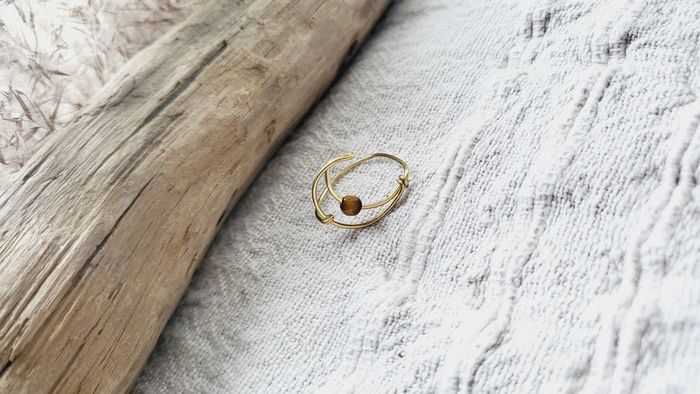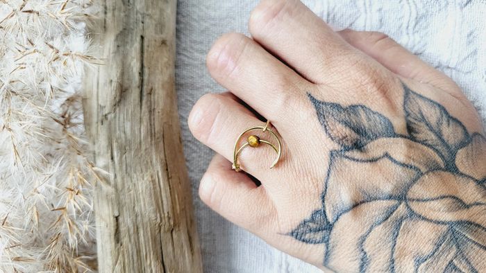 Bague lune en laiton doré taille 50 et pierre facettee oeil de tigre