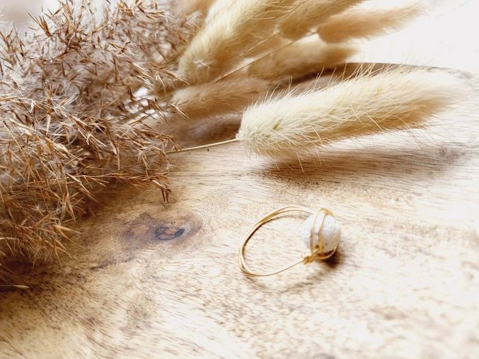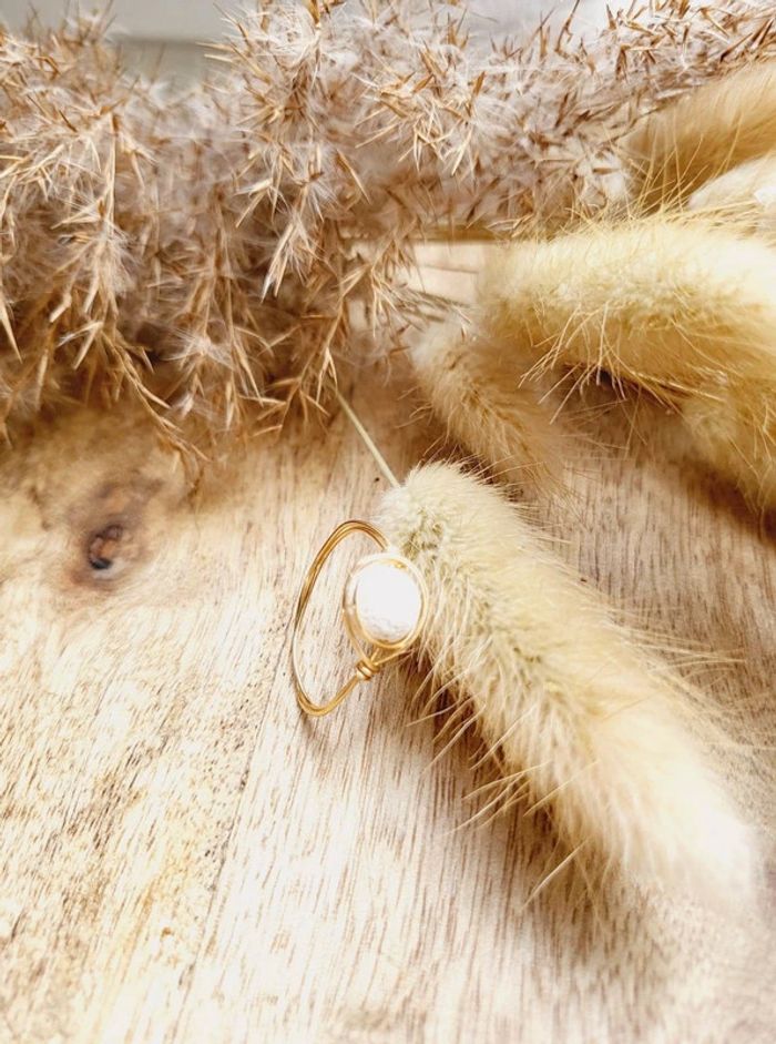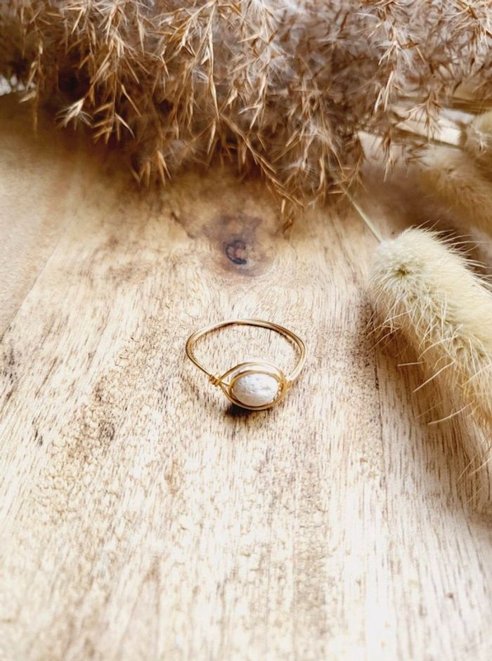 Bague en cuivre doré et pierre de lave blanche taille 60