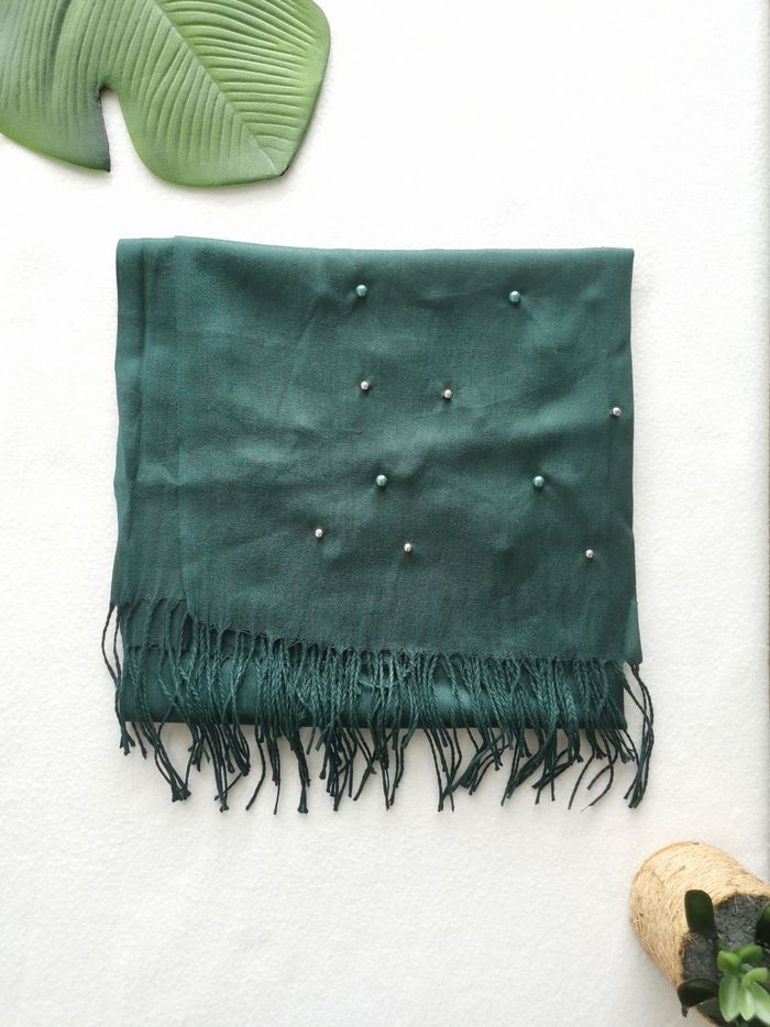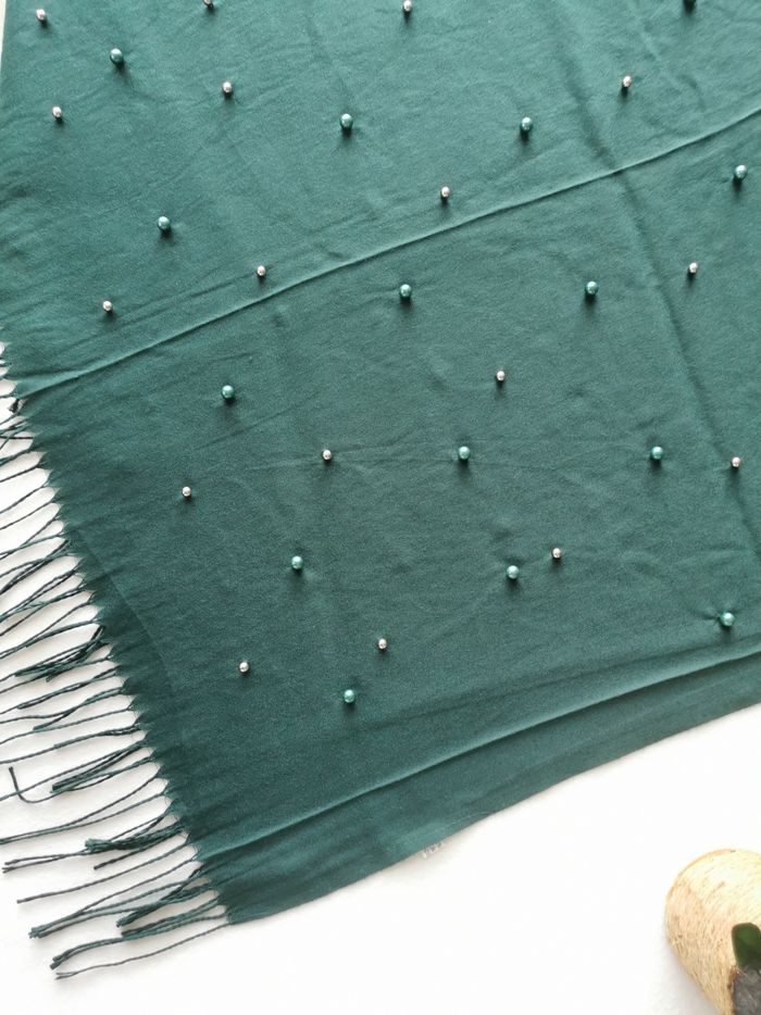 Châle, écharpe vert sapin détails perles - photo numéro 1