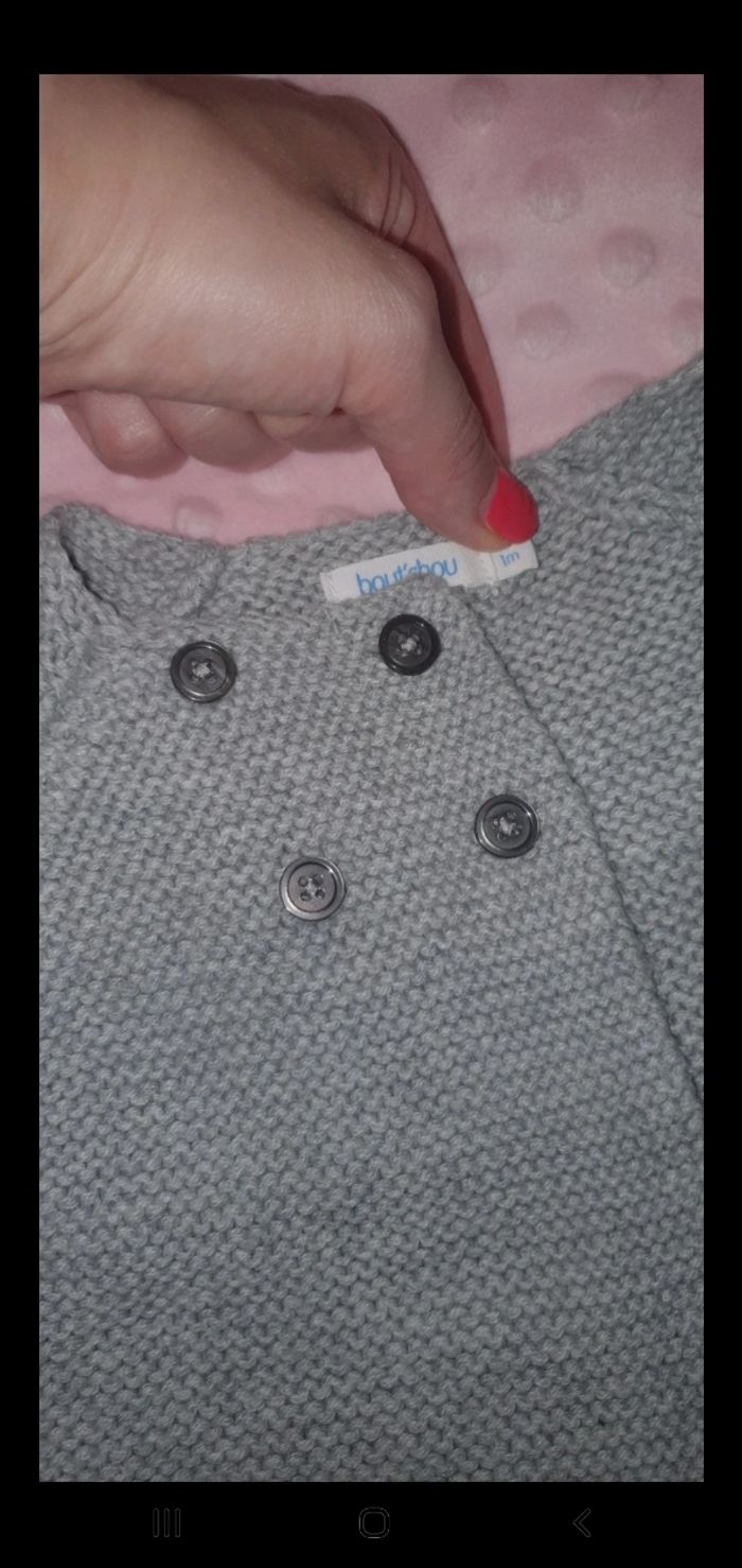 🎀Gilet bout'chou 1 mois 🎀 ⭐️Très bon état ⭐️ N'hésitez pas à me contacter pour plus de renseignements