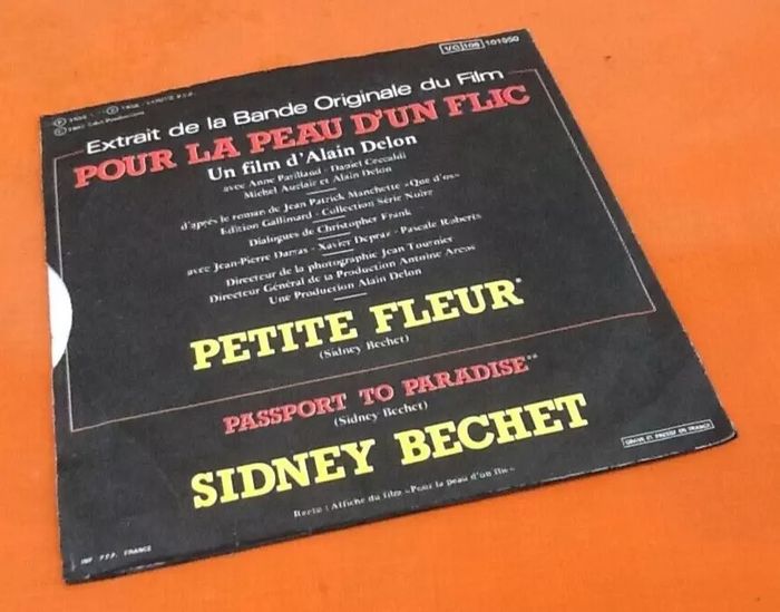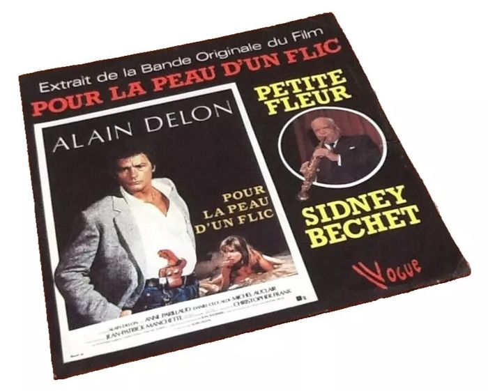 Vinyle 45 tours Alain Delon Pour la peur d' un flic Petite Fleur Sidney Bechet (1981) Vogue 101550 A Petite Fleur 3:10 B Passport To Paradise 2:55
