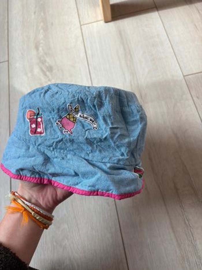 Bob en jean Taille 50 cm de tour de tête Avec elastique à l’arrière À repasser car sur la photo il n’y est pas