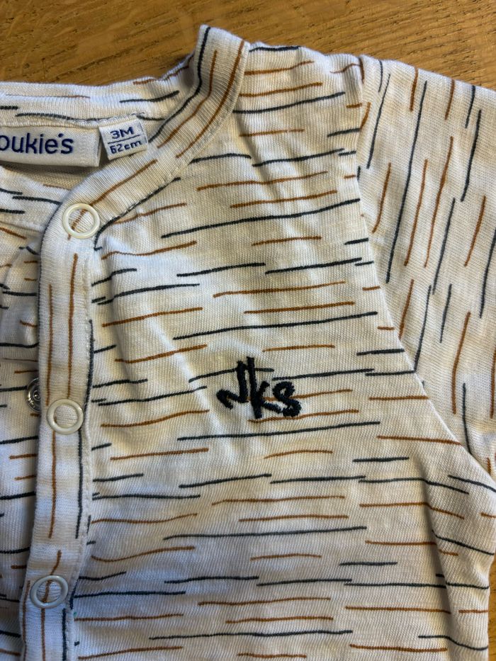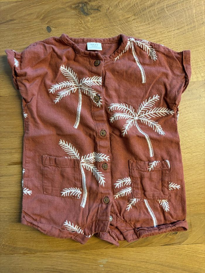 Combinaison palmier lin lavé portée une fois Next très jolie et pratique en 3 mois , taille grand peut durer au delà je pense Combinaison noukie’s très jolie en 3 mois Combi été marron la redoute 1 mois neuve en gaze de coton