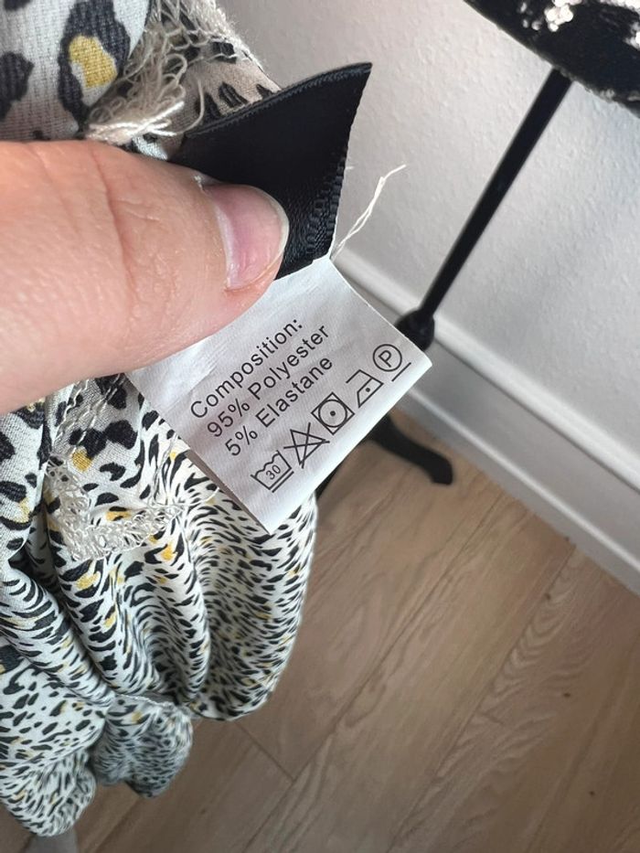 Taille: XL État : neuf sans étiquette (jamais porté) Couleur : blanc/beige et motif type léopard Élastique à la taille, volant, faux lacet à la taille Si l'article n'est pas porté, c'est que ce n'est pas à ma taille = pas de photo portée. ❌ Tous mes articles seront nettoyés avant envoie, envoie rapide (J+2 maximum le temps du nettoyage). ✨ Envoie uniquement en Mondial Relay. 📦 Pas d’UPS, ni de RELAIS COLIS ❌ les relais sont trop loin de chez moi. La vente sera annulée. J'accepte la négociation dans la limite du raisonnable. ✅ Avant tout achat, merci de lire mon profil 🦋