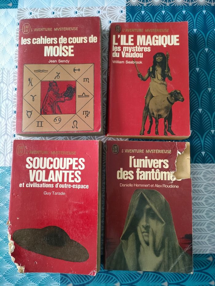 Les cahiers de Moïse Les mystères du vaudou Soucoupes volantes et civilisations d outre espace (livre mordillé mais n empêche pas le lecture) L univers des fantômes (couverture arrachée) #livresmaryline @ Les pages sont jaunies