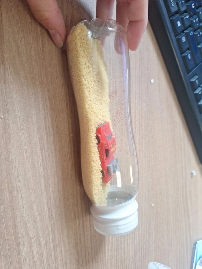 Bouteille sensorielle voiture rouge