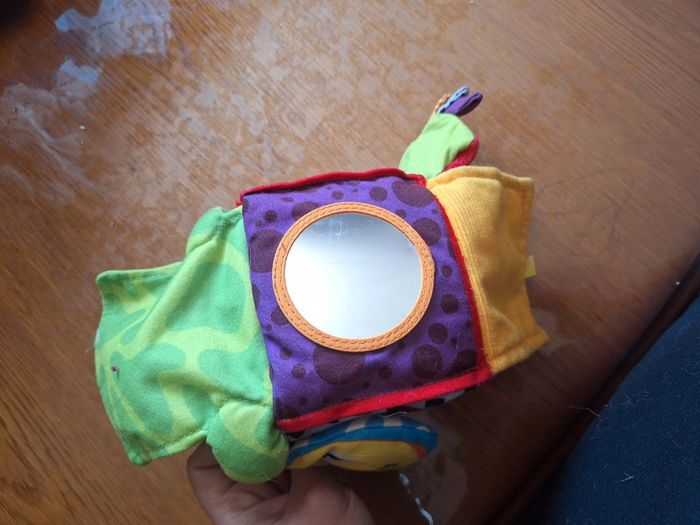 Idéal pour parc ou poussette. Dedans il y a un cube qui s'enlève Miroir coucou caché grelot animaux #zaceci28jouet