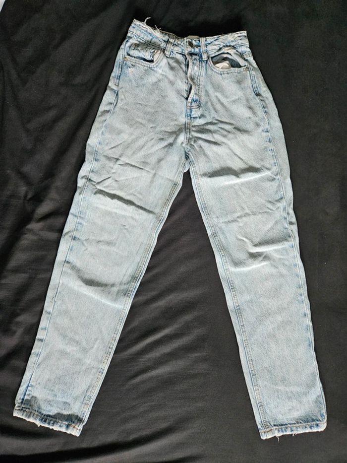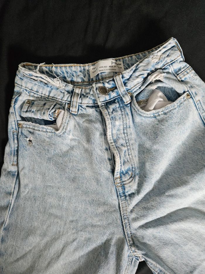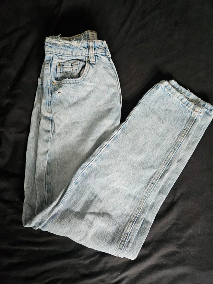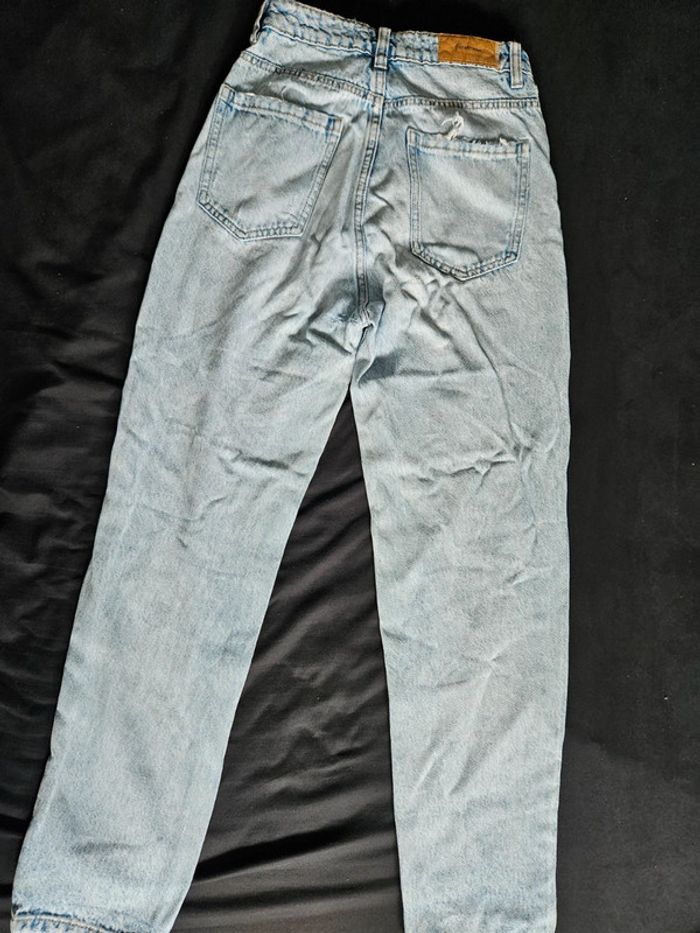 🌺🌺bonjour Vend jean mom stradivarius taille34 Petit défaut à l'entre jambe une retouche à été faite voir photo