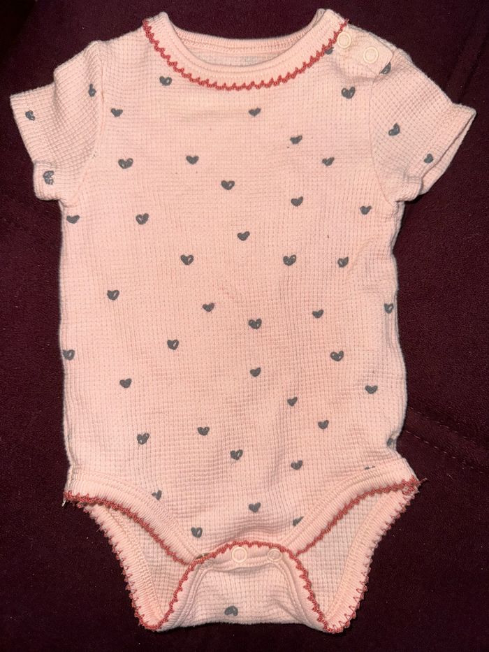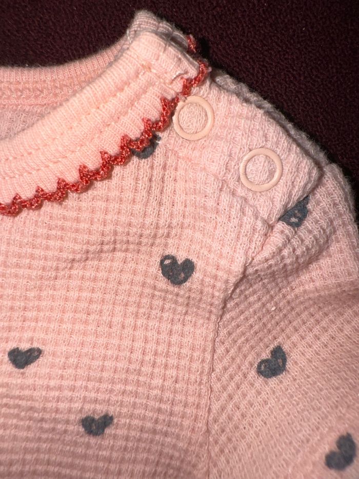 Body rose à petits cœurs Pressions sur l’épaule 3 mois
