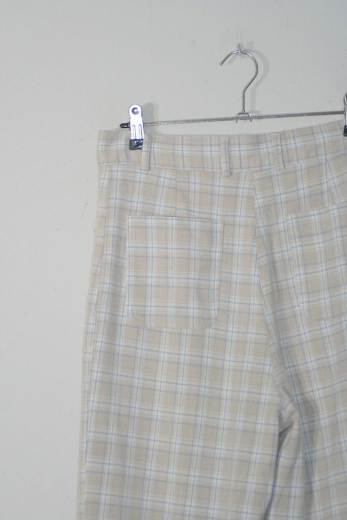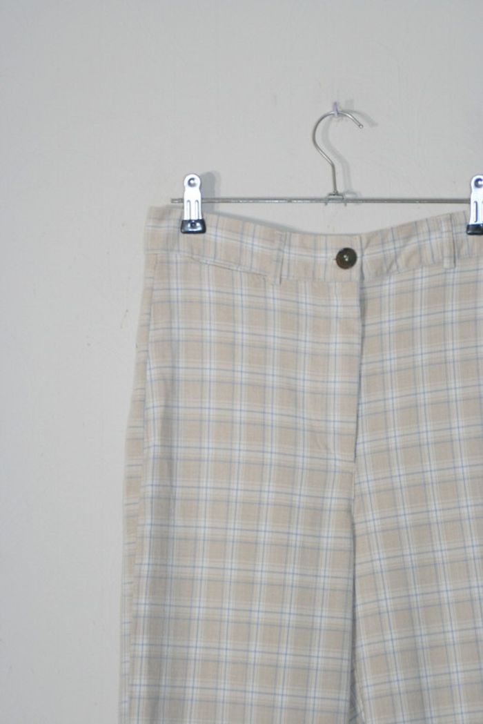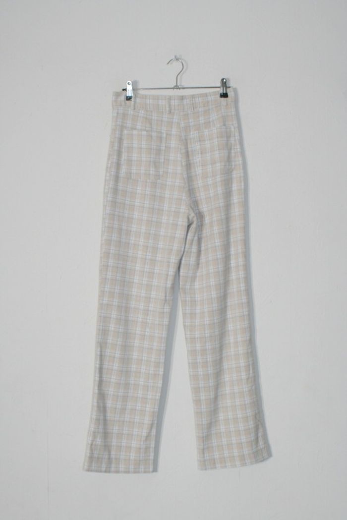 Pantalon à carreaux beige de chez Pimkie, taille 38, 35.5cm à la taille, 105cm de long, 58% viscose / 40% polyester / 2% élasthanne, 380g
