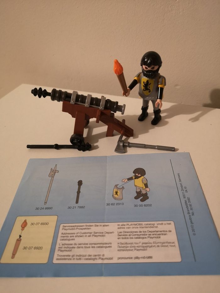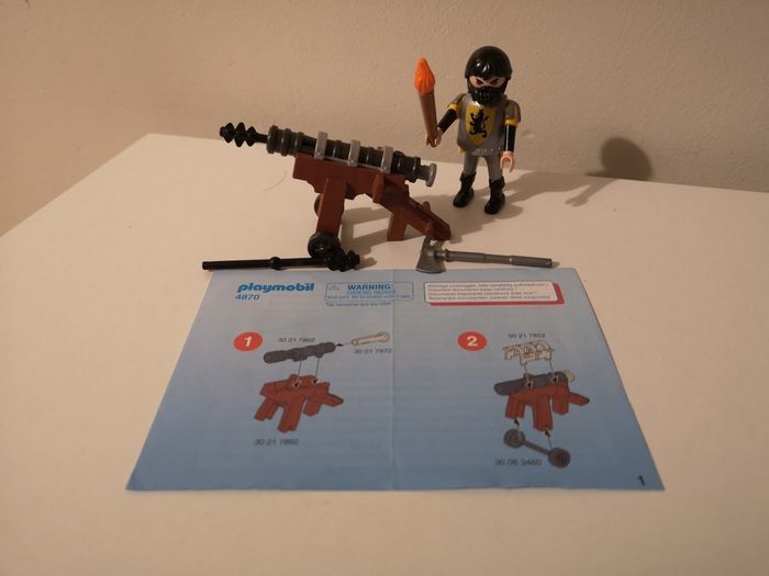 Vends playmobil réf 4870 canonier des chevaliers du lion, comprenant 1 personnage avec un canon et accessoires. Complet avec notice.
