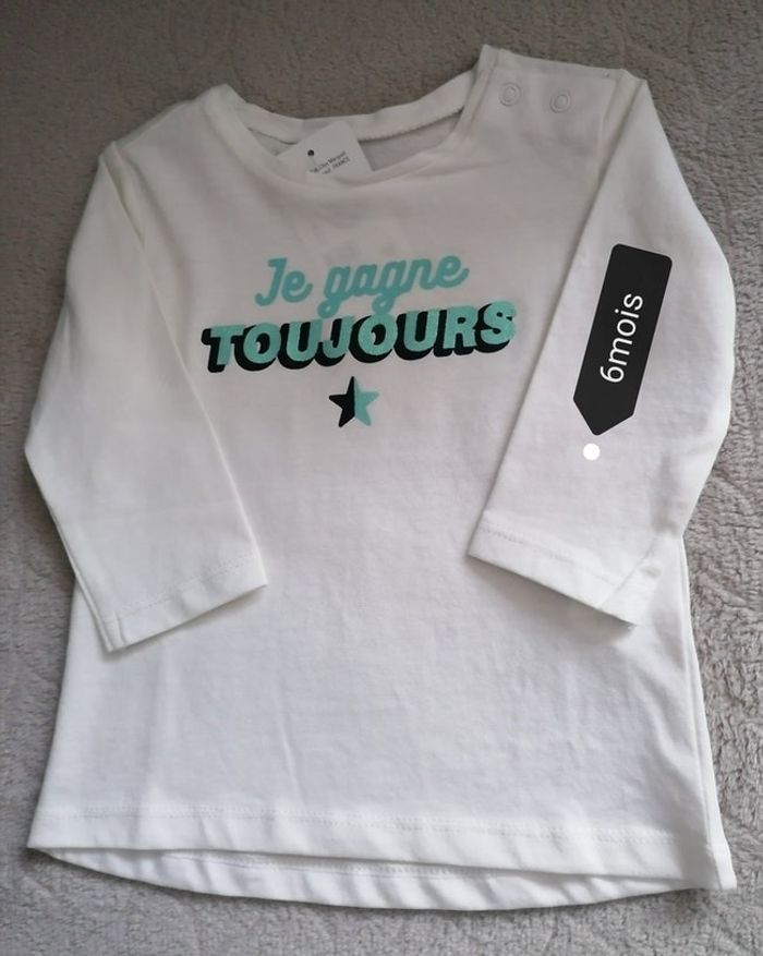 T. Shirts Manche longue filles Marque grain de blé Age 6mois (68cm) Couleur blanc Écriture :pailleté Matière tissus 100 %coton Neuf avec étiquette 5€