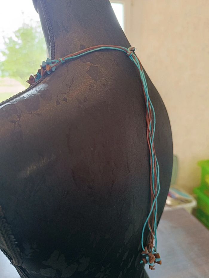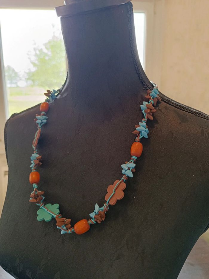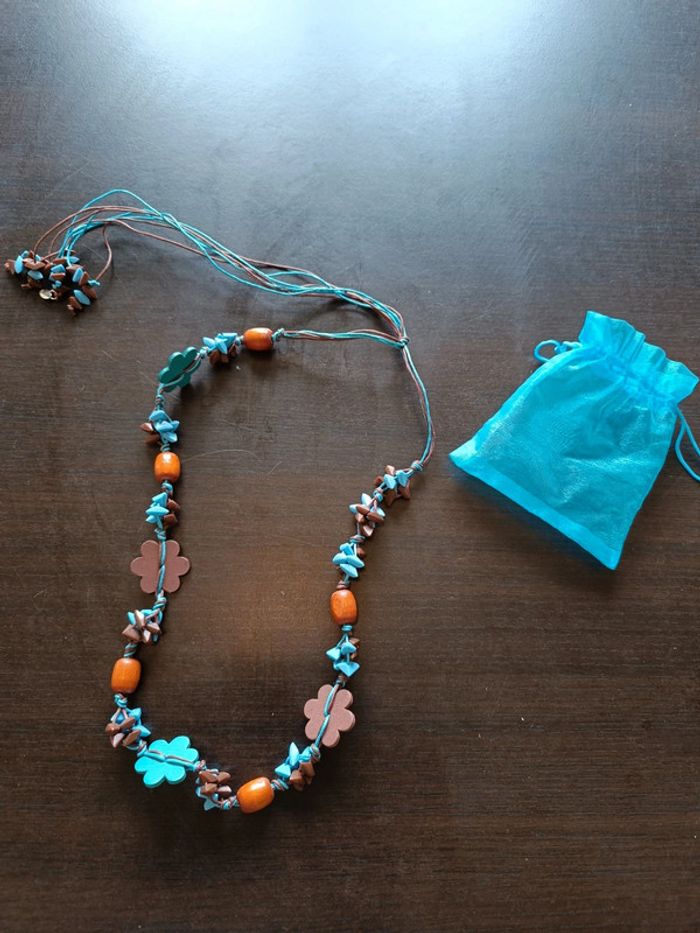 Collier fantaisie Perles marrons & bleues Petite pochette fournie avec NEUF SANS ETIQUETTE Allez voir mes autres ventes!