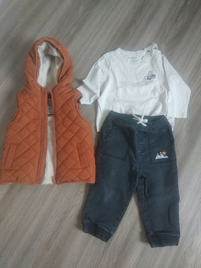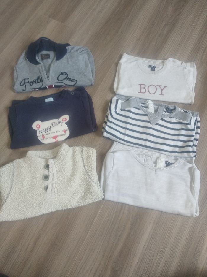 Lot 18 mois En très bon état 6 pulls 1 ensemble : veste sans manches + pantalon+ t-shirt MC 1 ensemble short + t-shirt 4 t-shirt MC 1 barboteuse 5 jeans 4 pantalons style jogging 5 chemises (4 ML+1 MC) 3 bonnets 1 ensemble survêtement adidas 2 t-shirt anti UV Mustela 4 vestes