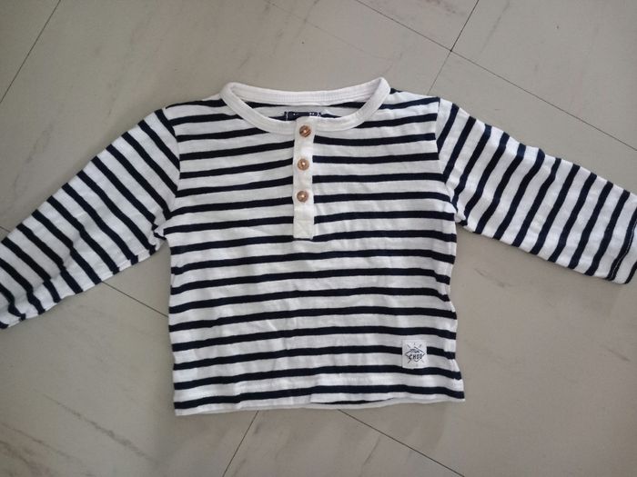 ☆ Magnifique haut manche longue ☆ Marque : Kiabi ☆ Couleur : Blanc / Bleu marine ☆ Taille : 3 mois ☆ Très bon état