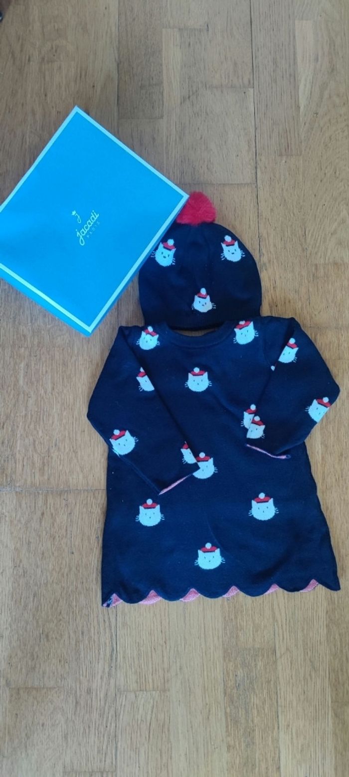 Robe hiver + bonnet Jacadi taille 12 mois en parfait état dans sa boîte