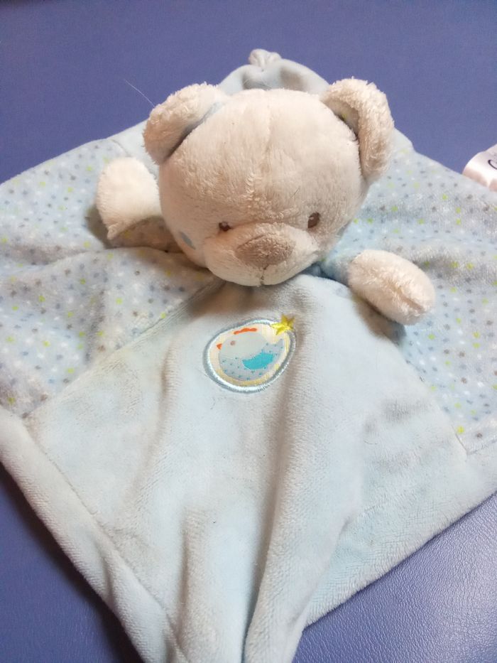 Doudou carré garçon bébé tête ours bleu mots d'enfants, motif, mouchoir leclerc - photo numéro 2