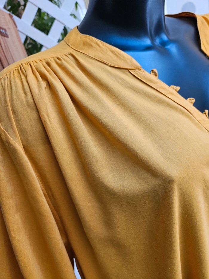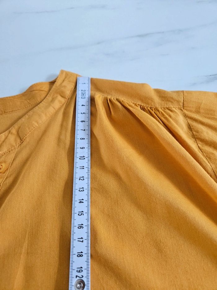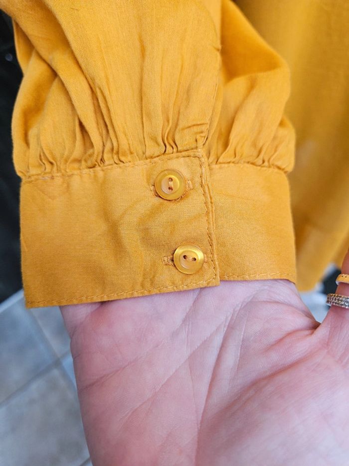 De couleur moutarde. Elle se porte ample mais taille grand. Elle est en parfait état et les dimensions se trouvent sur les photos