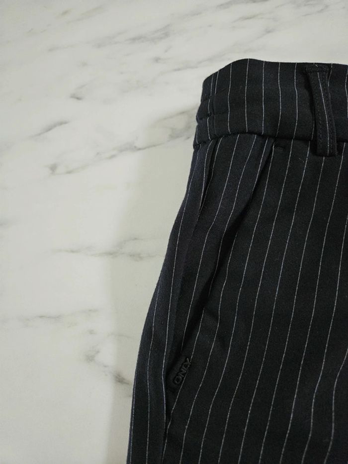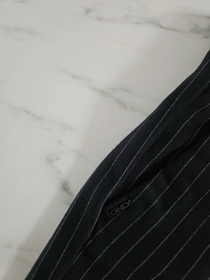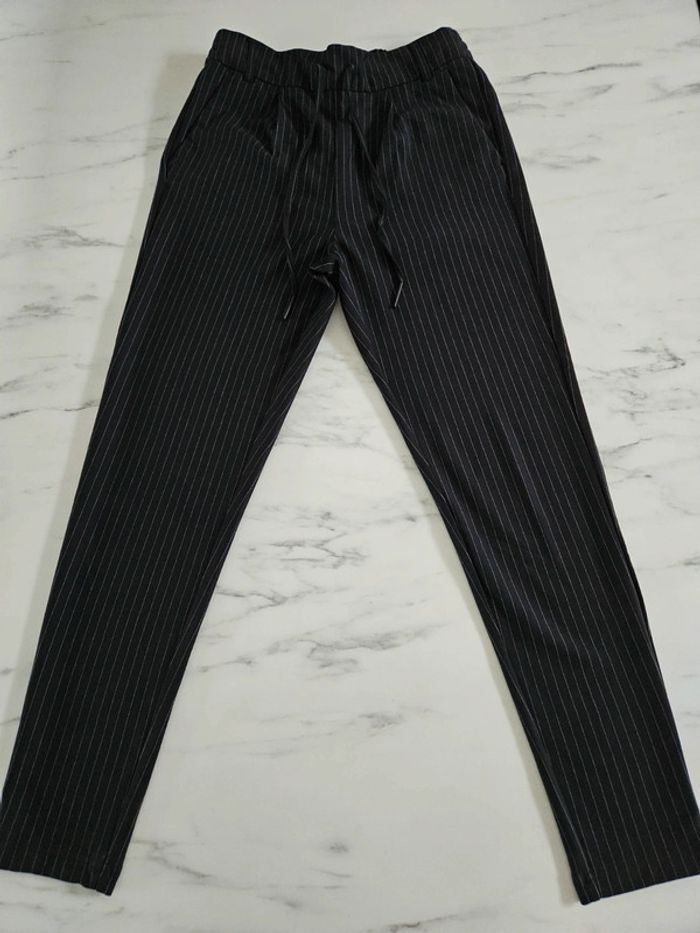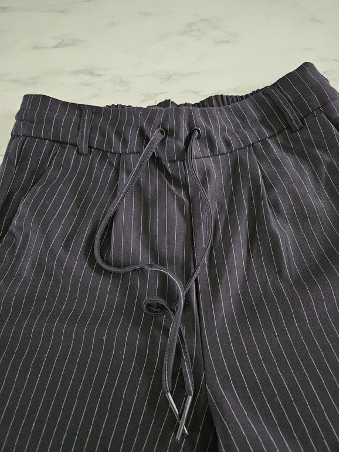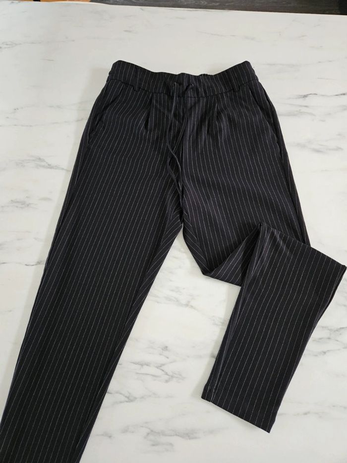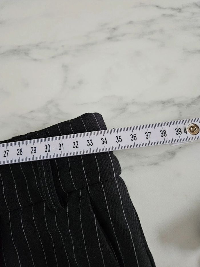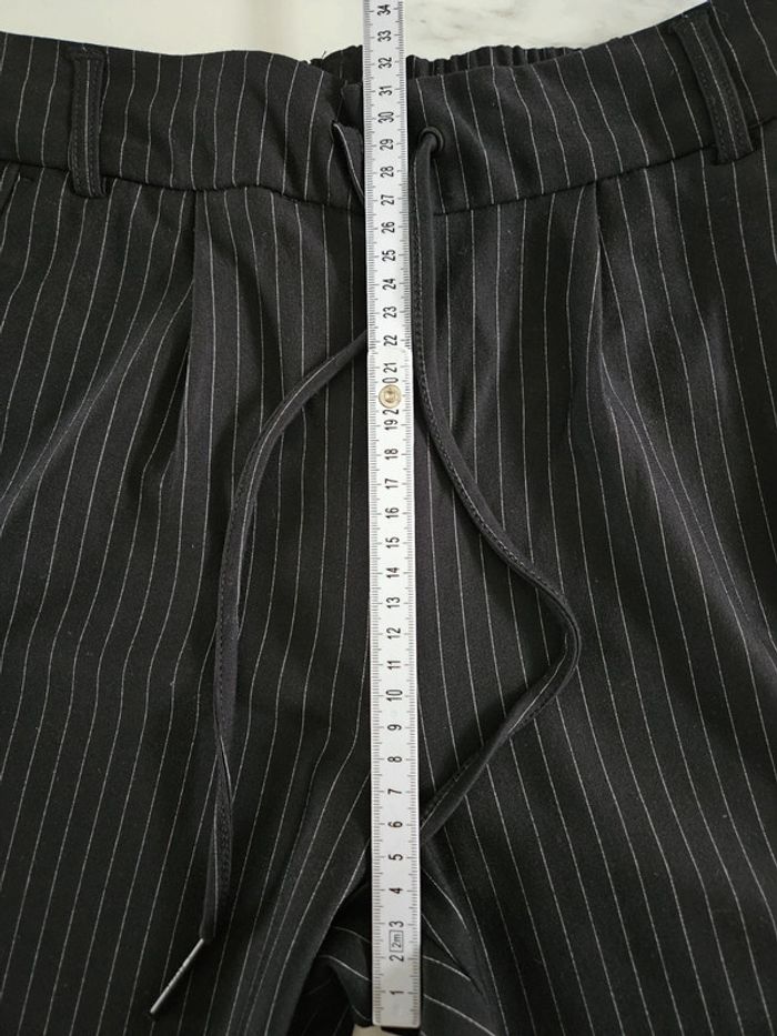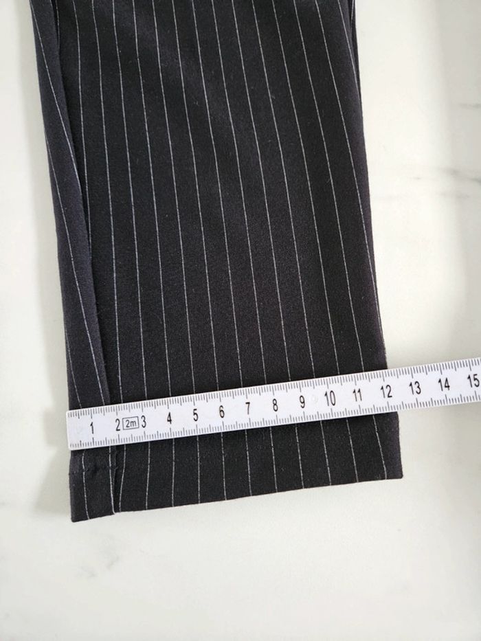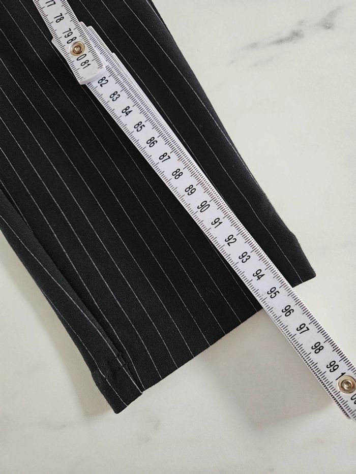 Pantalon noir à lignes. Super agréable à porter. Pour taille XS ou S. Porté mais reste en très bon état et les dimensions se trouvent sur les photos