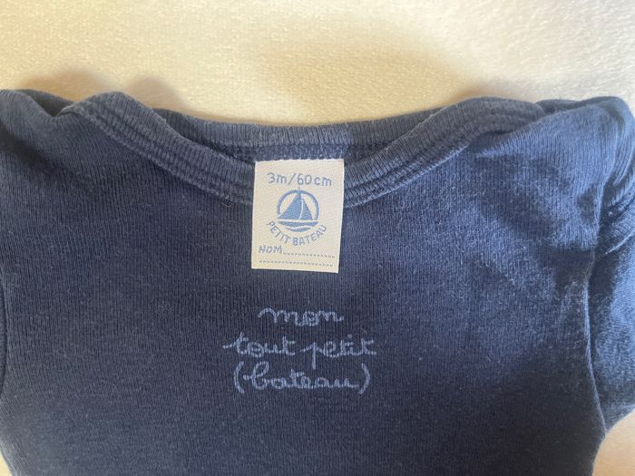 4. Petit Bateau de couleur bleu avec un petit écriteau
