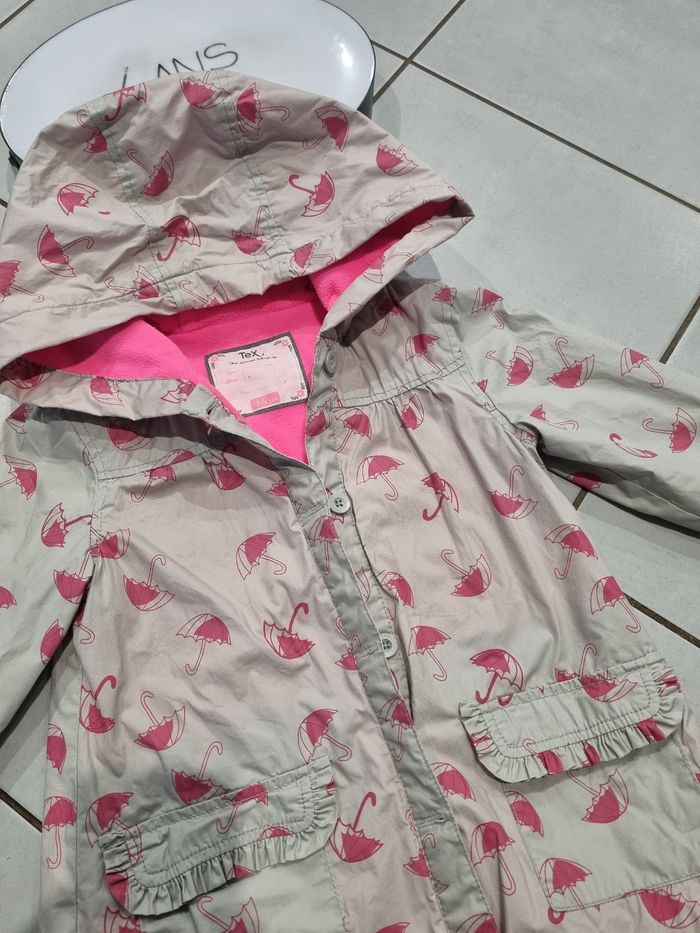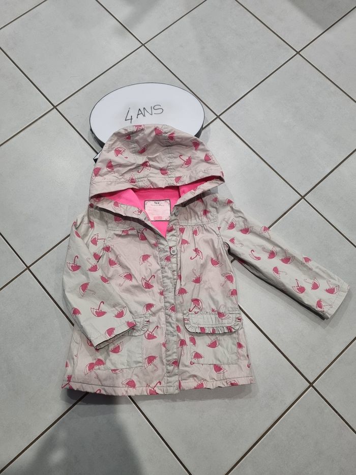 Imperméable 🧥 long pour fille 👧🏻 avec poches Intérieur polaire rose fluo Motif : parapluie ☔ Bouton et capuche Quelques petites tâches (voir photo) #harmonie1017fille4ans