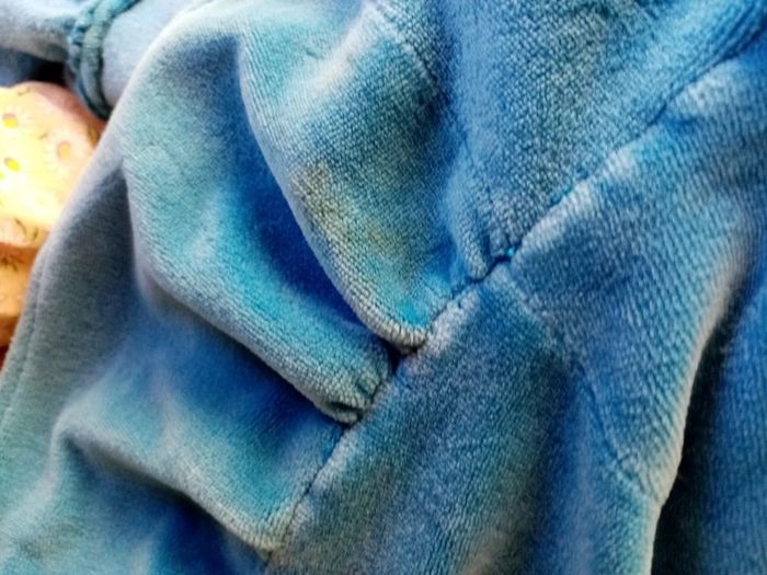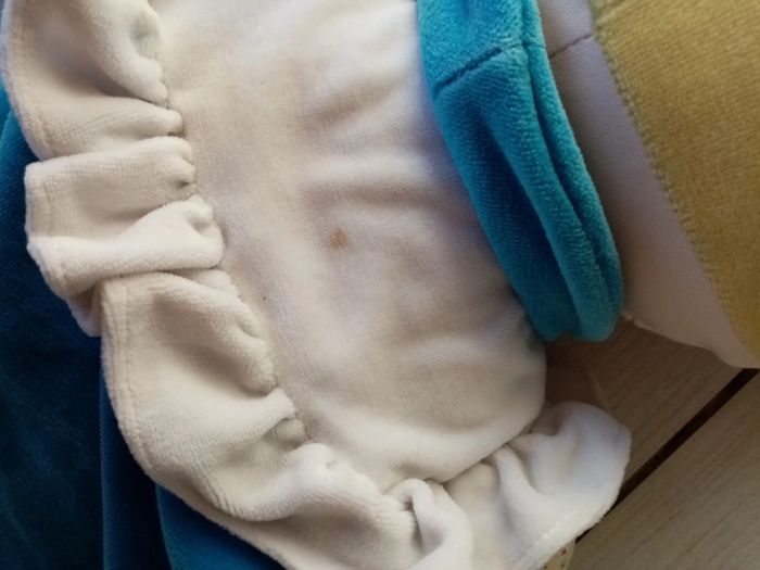 Lavable. Longueur 65 cms. Tâche dans le bas de la robe et au niveau du col.