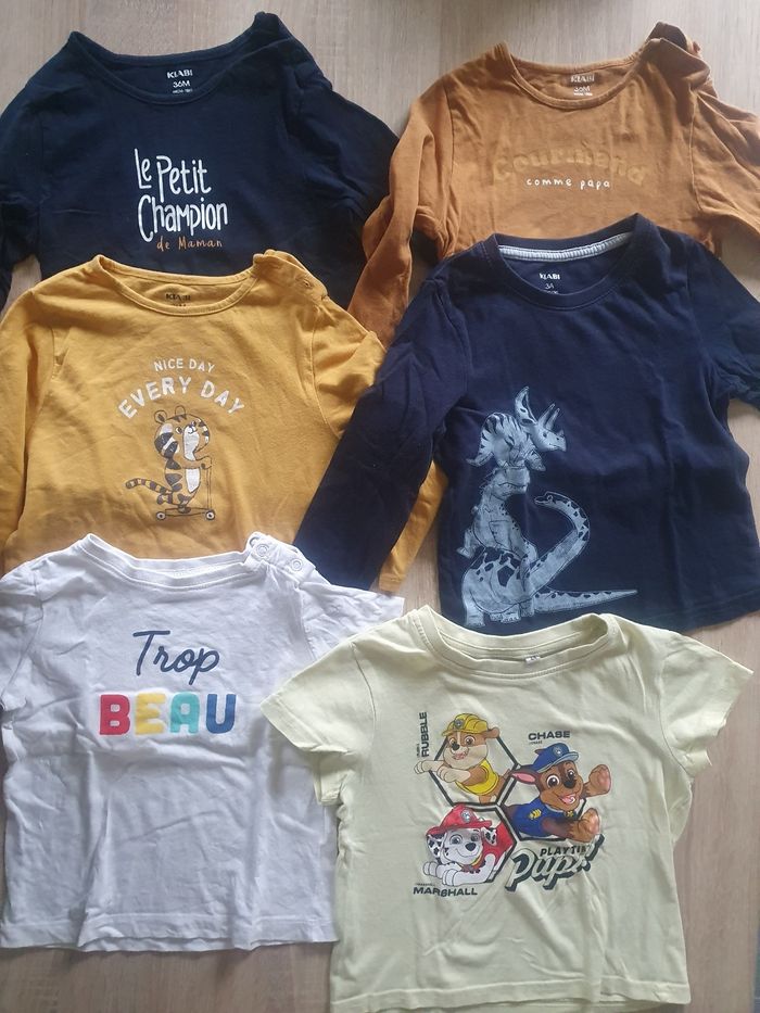 Lot de tee-shirt Taille 3 ans 2 tee-shirt manches courtes en très bonne état 4 tee-shirt manches longues : 2 en très bonne état 2 avec des traces usures , voir sur les deux derniers photos