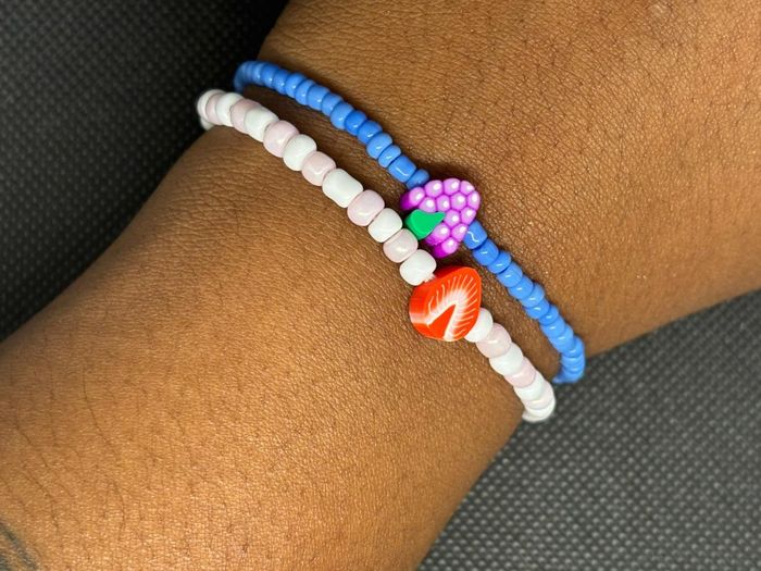 Bonjour, Vend lots de bracelets enfants Motif fraise 🍓 et motif raisin 🍇