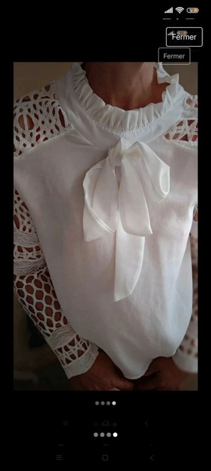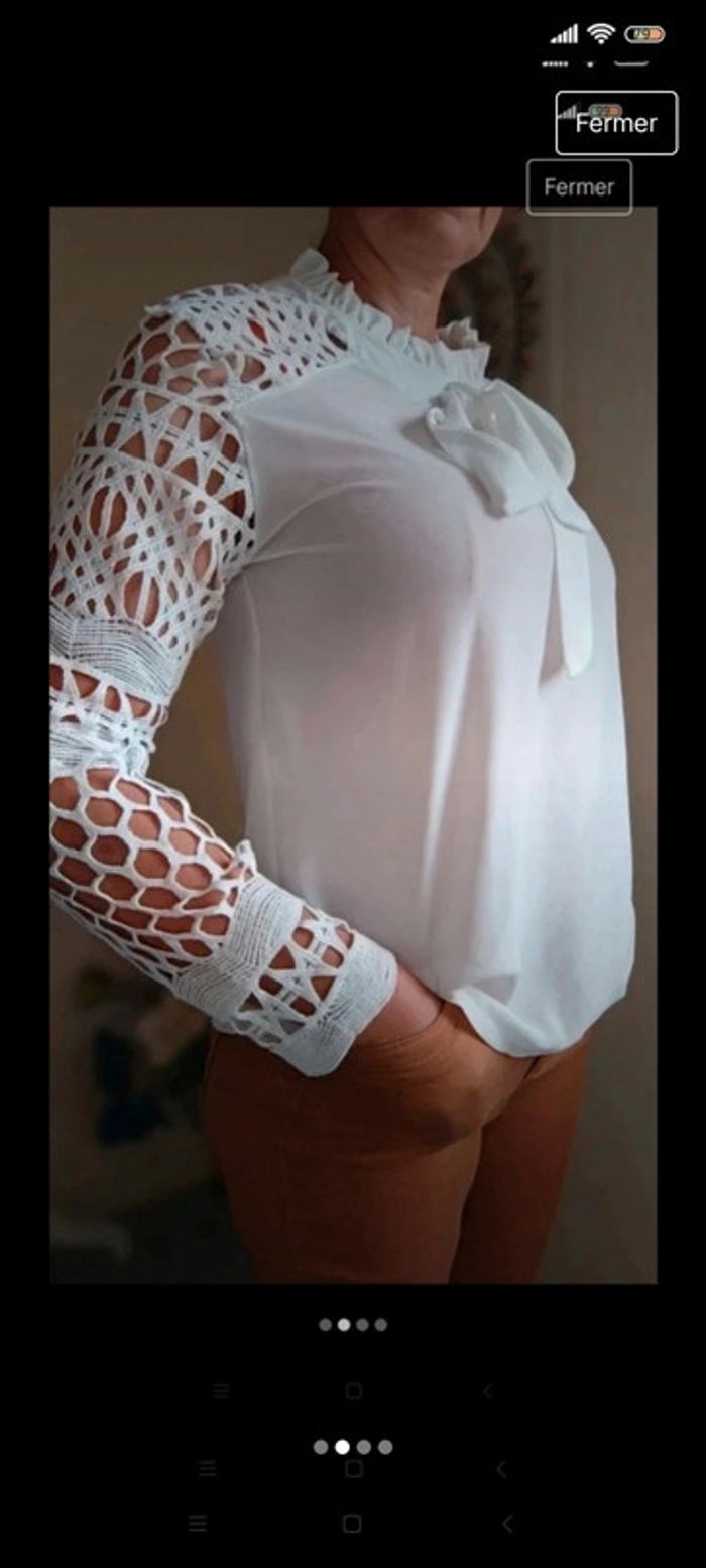 Blouse blanche manches ajouré t 40 - photo numéro 4