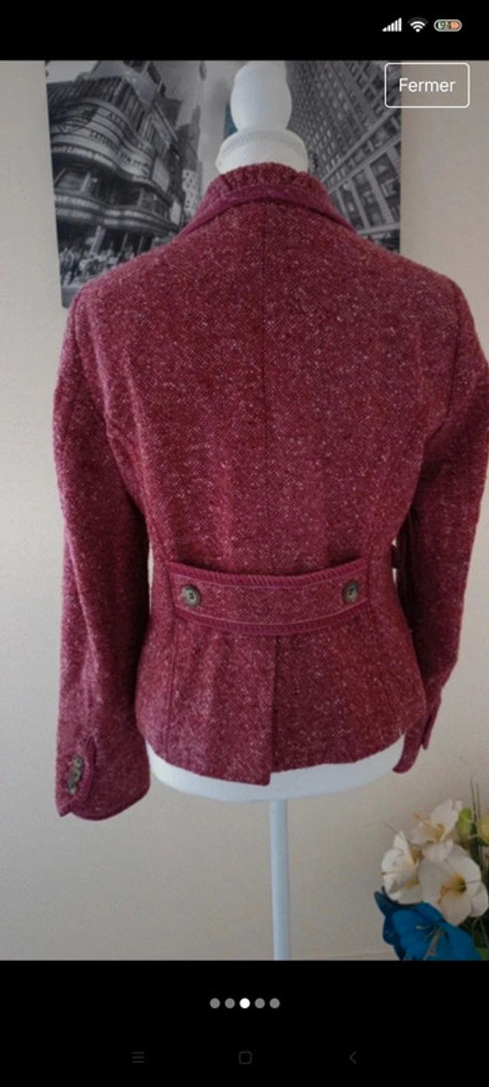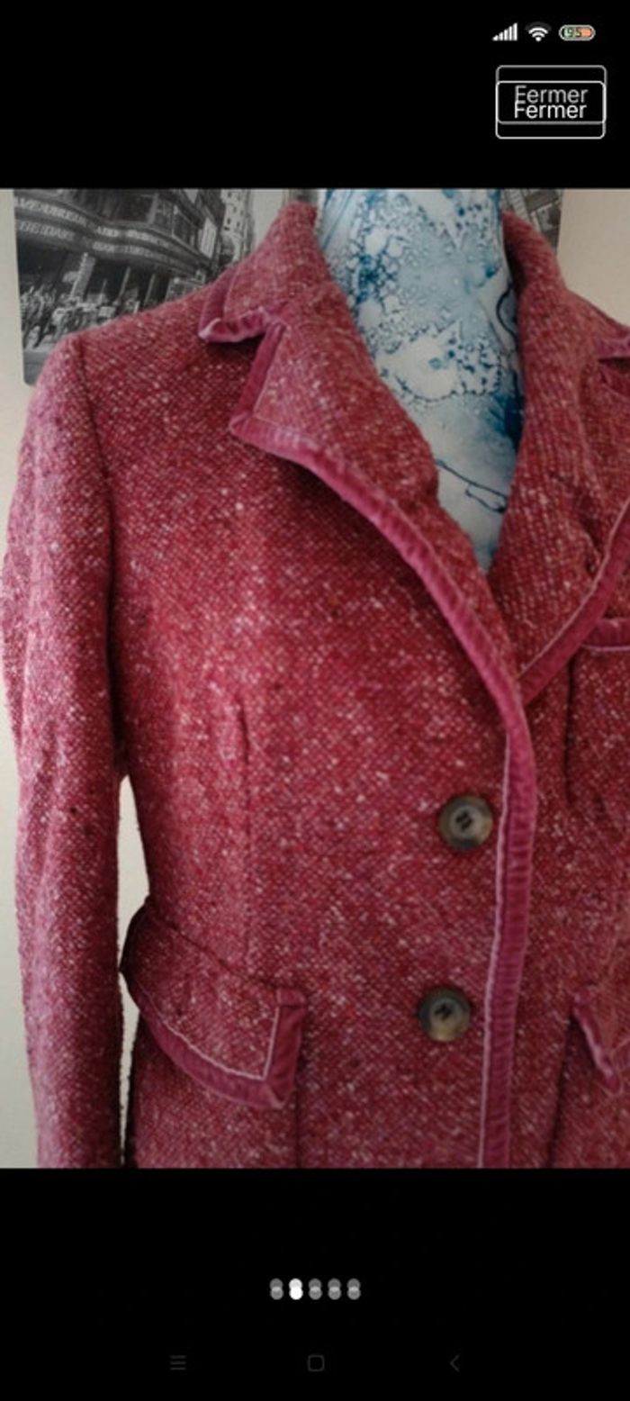 Veste blazer t 40 mi saison , tbe. Col effet soie rappelé aux poches . Couleur rouge fushia