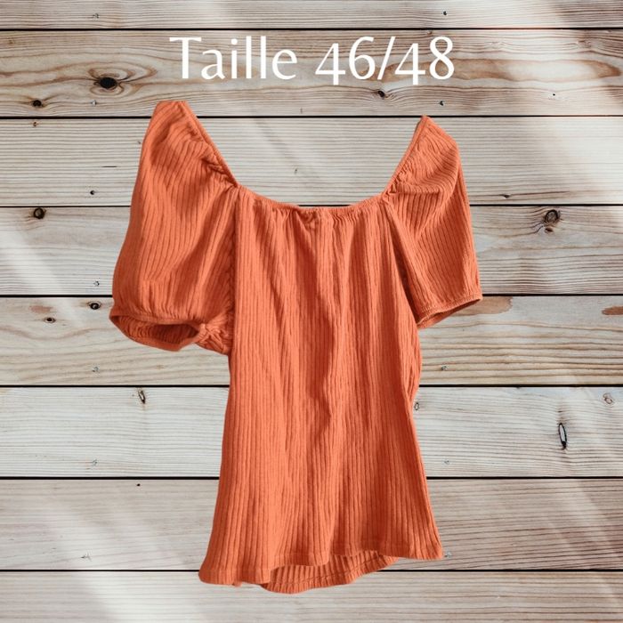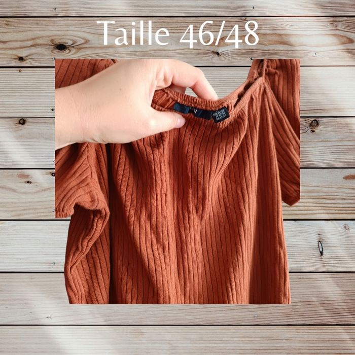 ✨Haut côtelé en très bon état. Peu porté 🔖Marque: Kiabi 📏Taille:46/48 🎨Couleurs: marron orangé 📨 Envois rapide et soigné