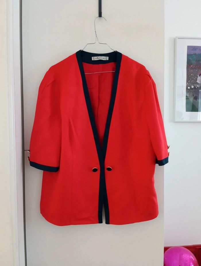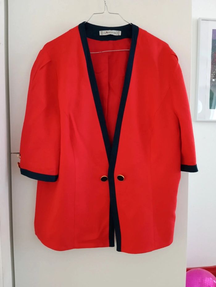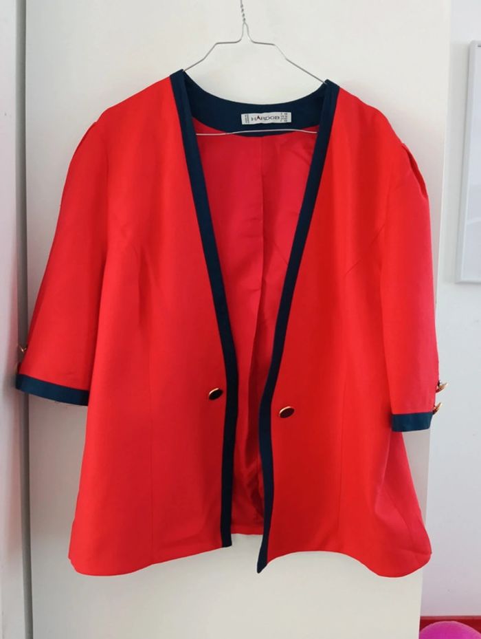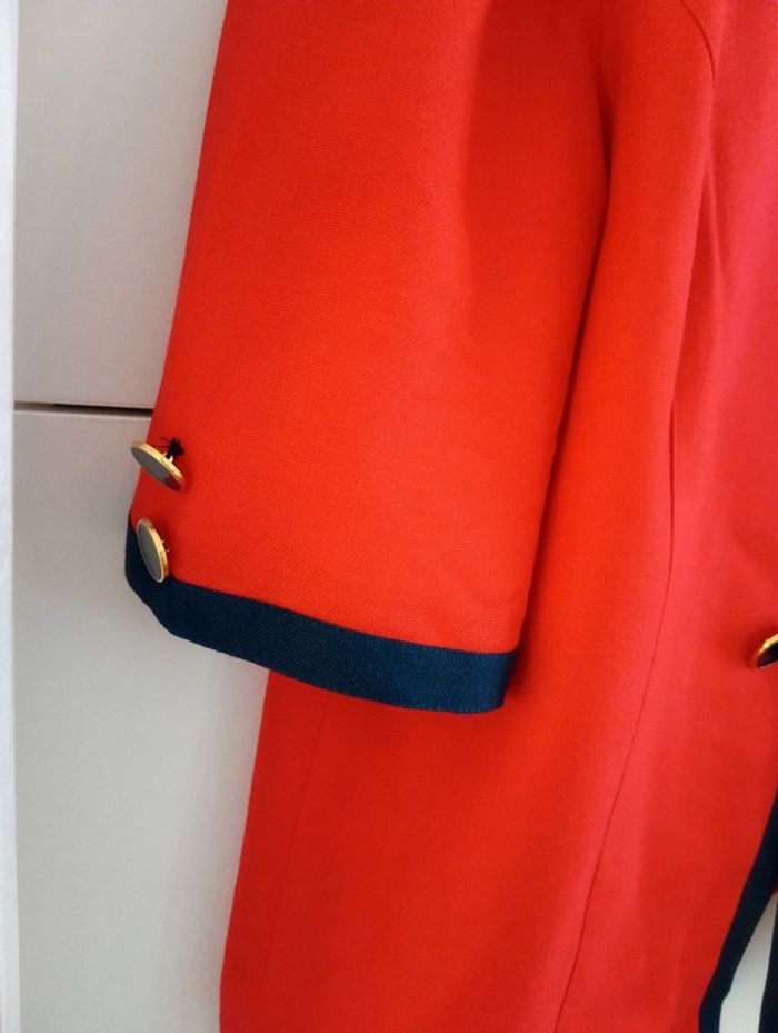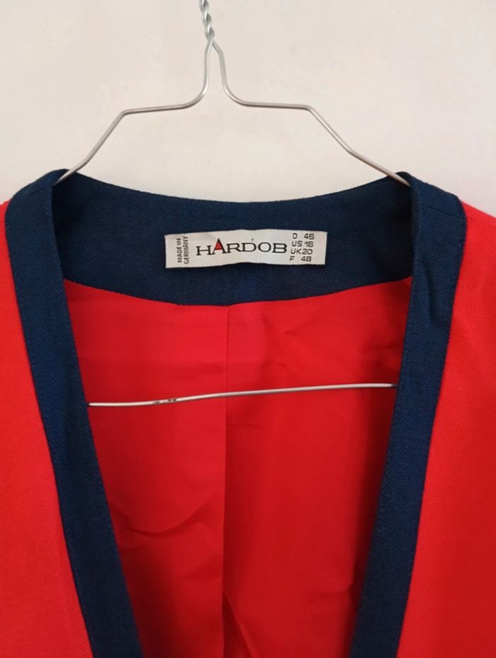 Veste vintage Hardob Made in Germany taille 42/44 Rouge liseré bleu Boutons dorés Mesures Epaules 43cm Aisselles 59cm Longueur 65cm Matière épaisse viscose