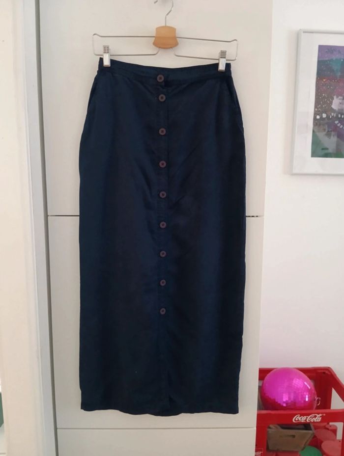 Jupe longue boutonnée marine Etam vintage - photo numéro 1