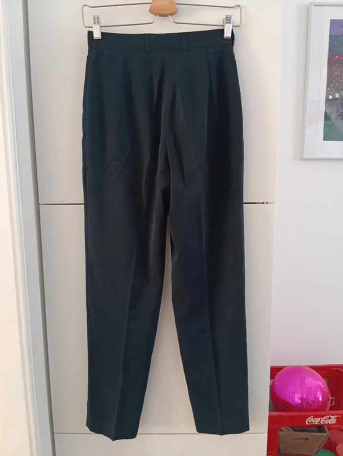 Pantalon vintage marine toucher peau de pêche taille haute Made in France Mesures Taille 36 estimée à confirmer avec les mesures Taille 36cm De la taille à l'entrejambe 35cm Longueur 100cm