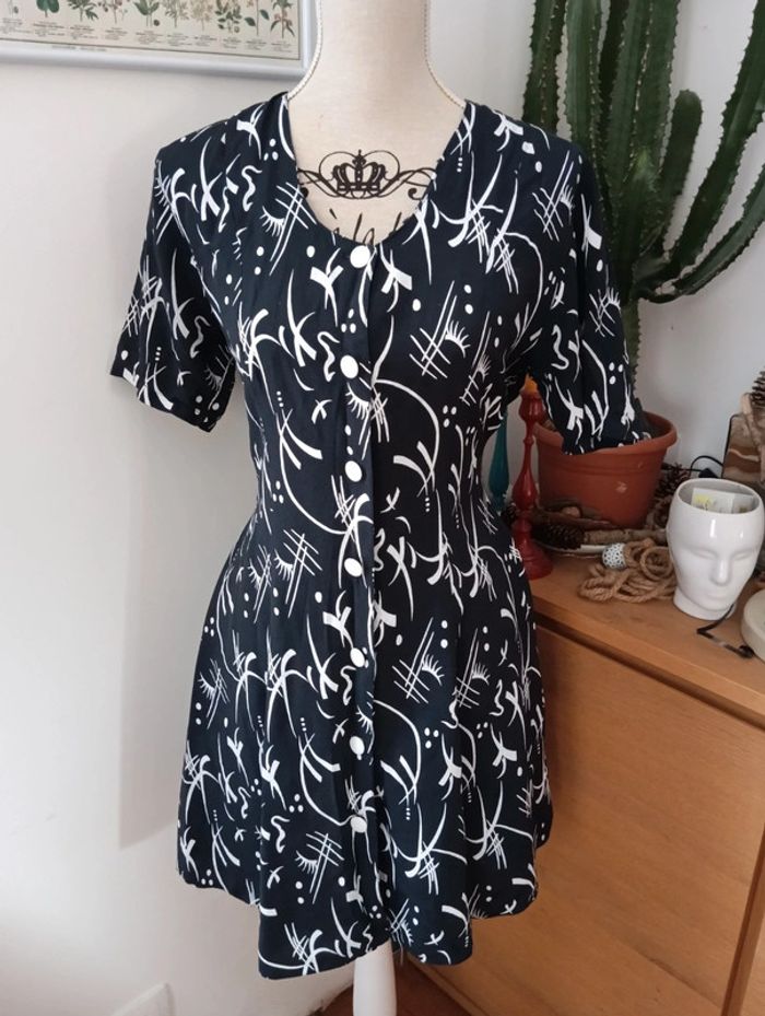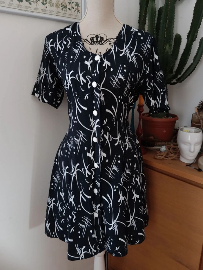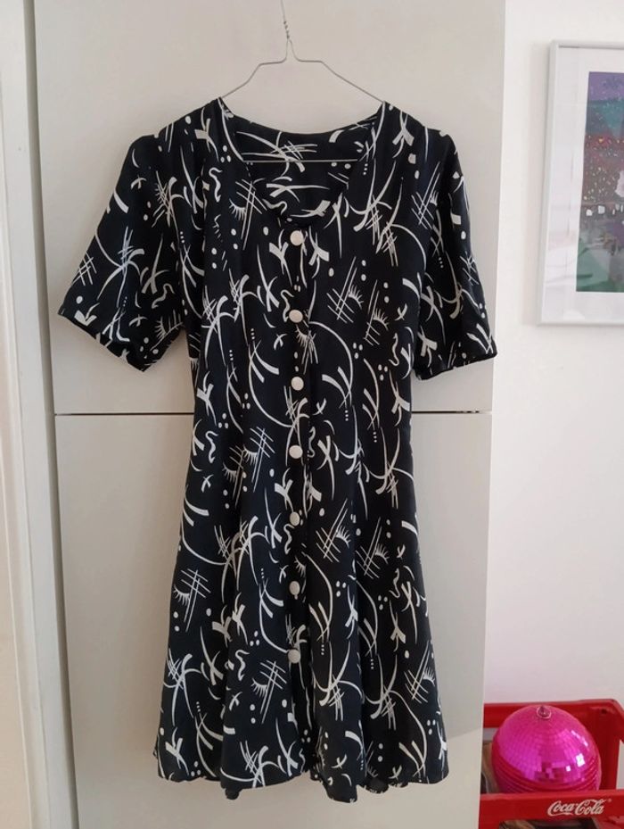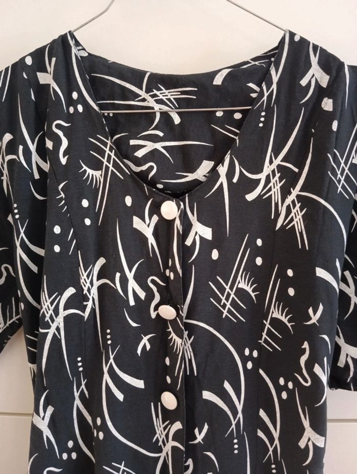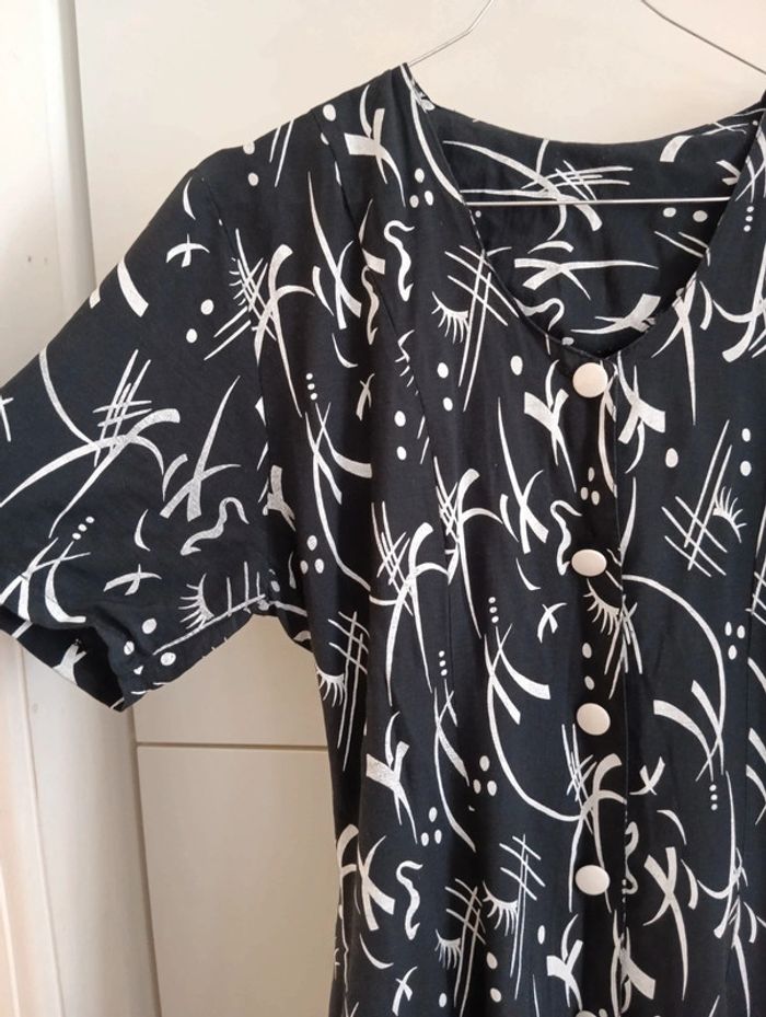 Robe boutonnée viscose marine motifs blancs taille 38/ 40 - photo numéro 2